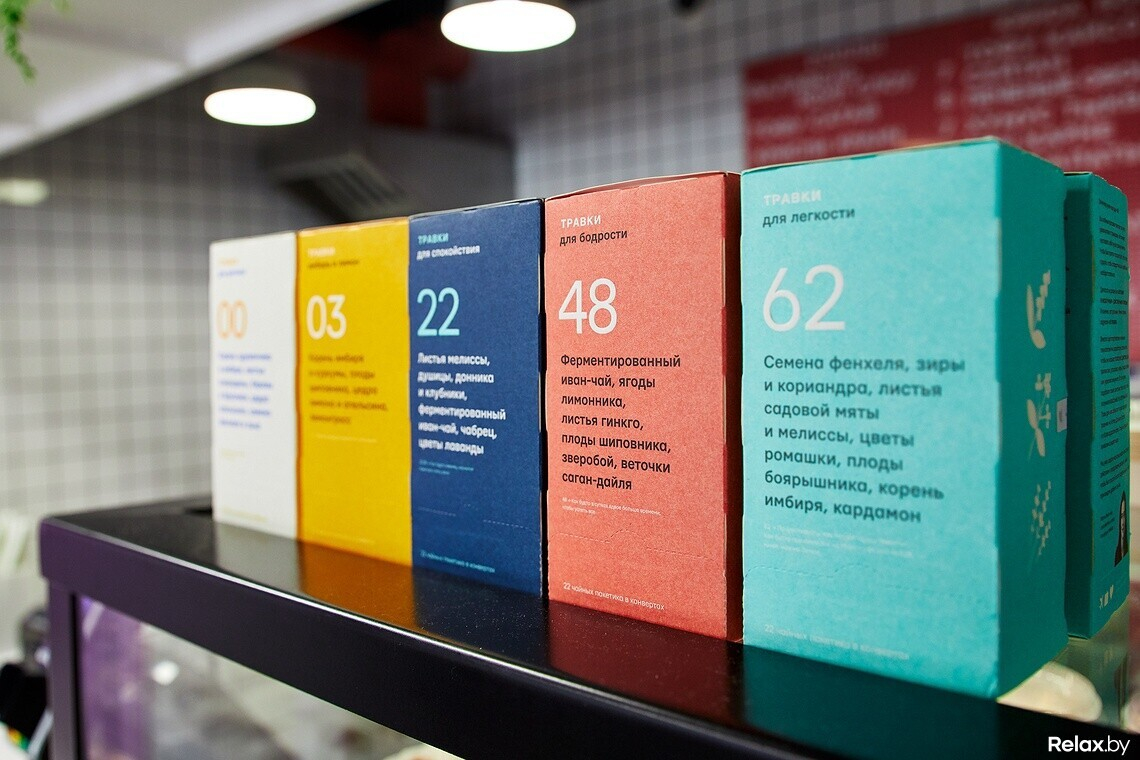 Кстати, если пришли в Green+Go, присмотритесь к травяным чаям, которые расположились над витриной. Их составы полностью натуральные — мелисса, ромашка, ягоды лимонника, корень имбиря, кардамон. Поговаривают, что они способны вернуть бодрость, помогают обрести легкость и спокойствие.