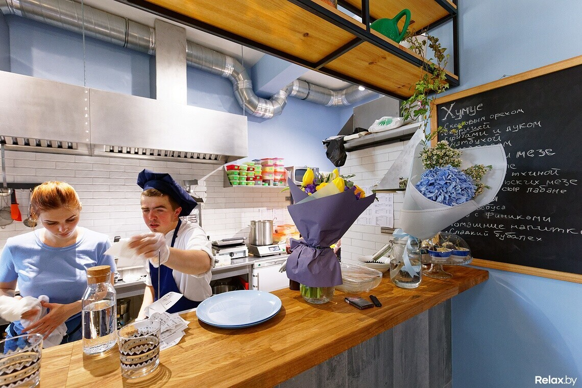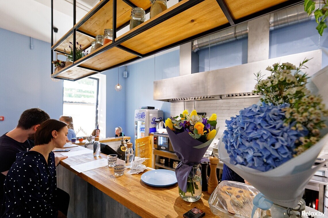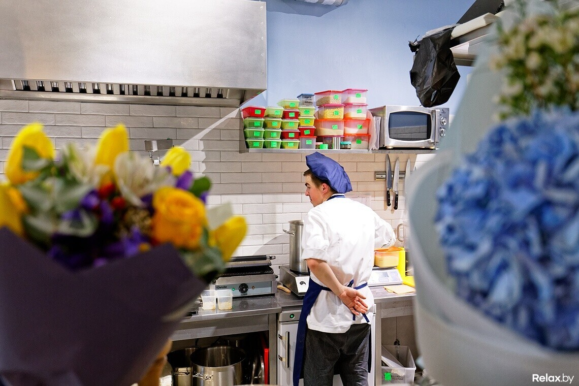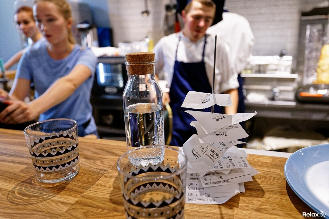 Relax.by заглянул в новое место на следующий день после открытия — ни одного свободного столика и бесконечный поток любопытных гостей. Валерия помогает своей команде: подает блюда, рассчитывает гостей, внимательно выслушивает первые отзывы.