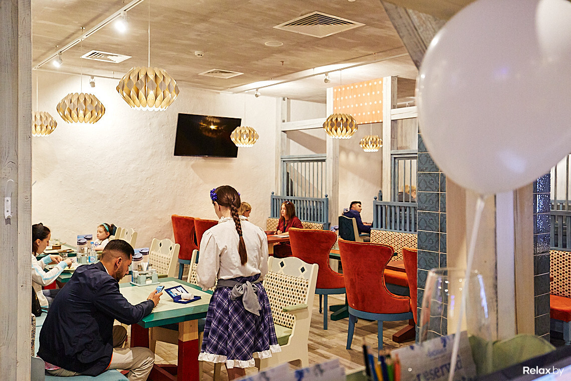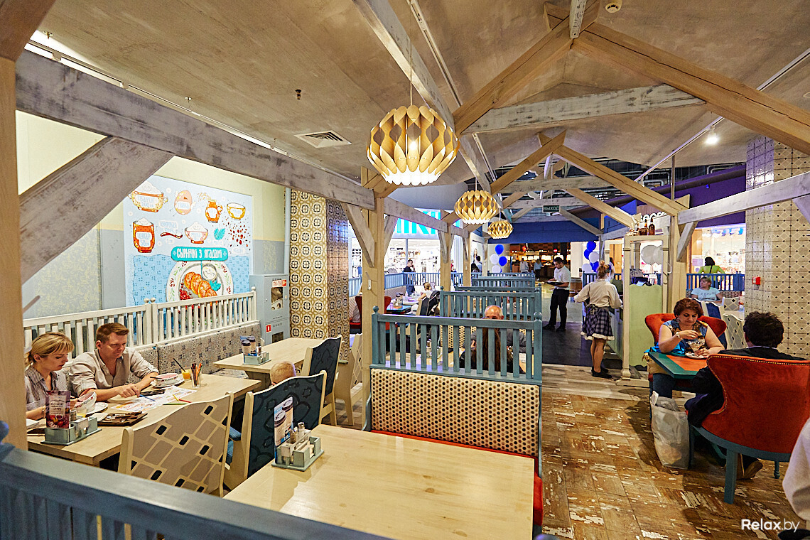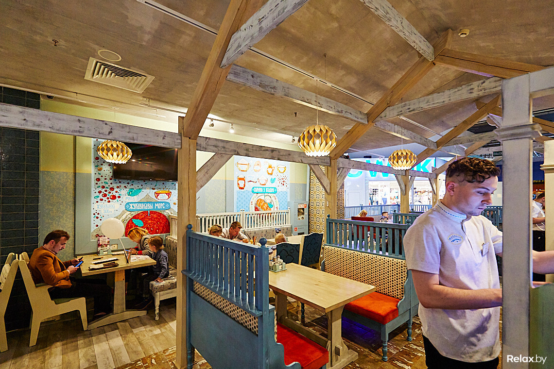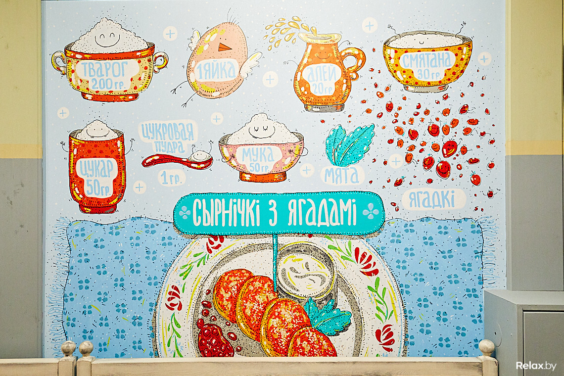 Это уже 11 заведение известной сети с привычными для гостей национальными элементами в интерьере. Есть лишь небольшое отличие: стены нового ресторана в ТРЦ Expobel оформлены яркими рисунками с рецептами традиционных белорусских блюд.