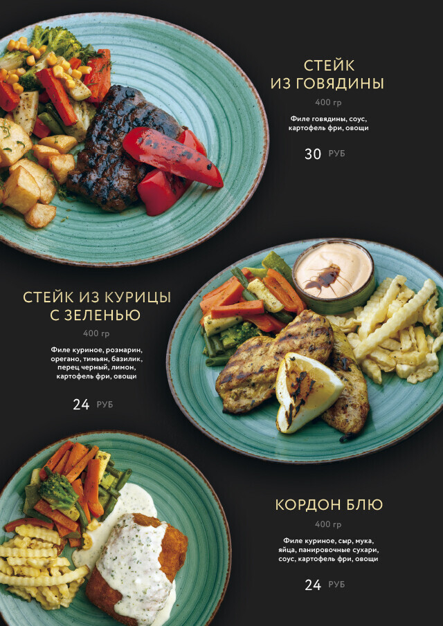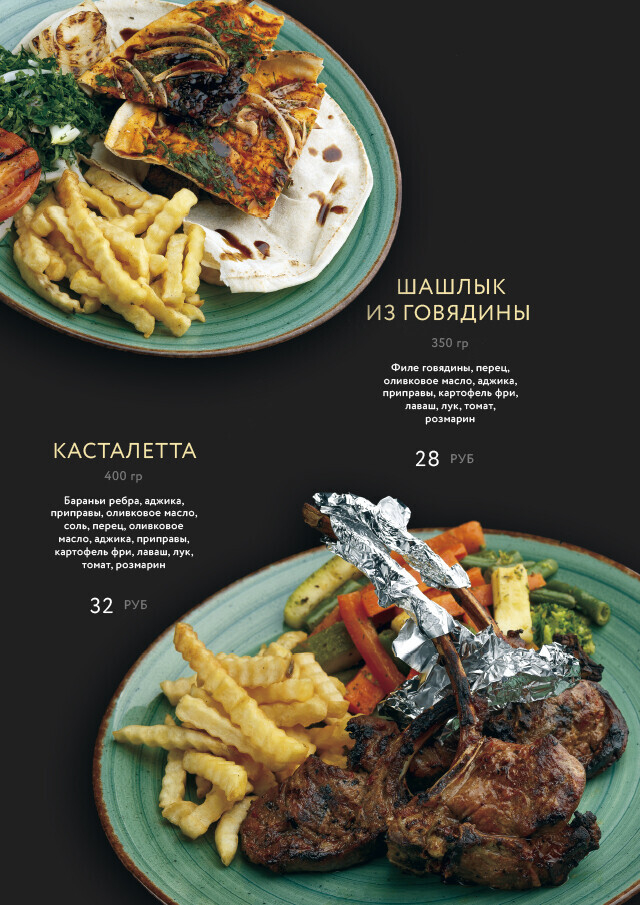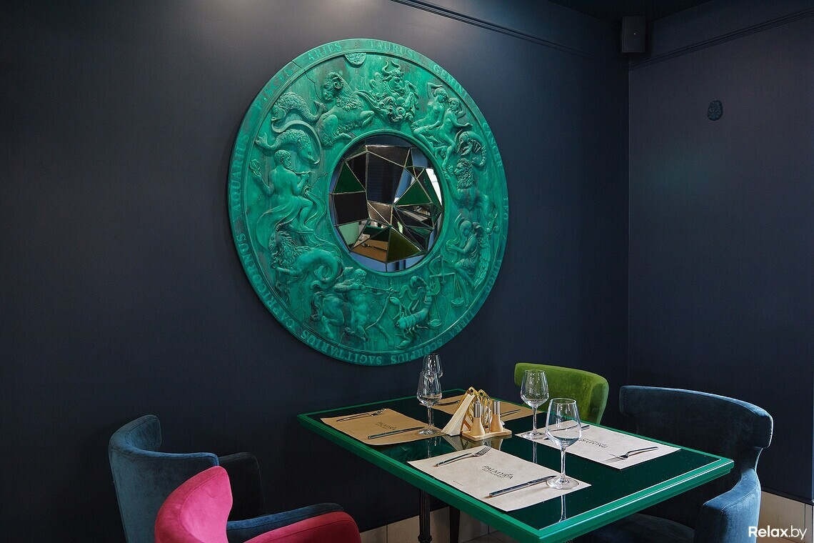 «Наше главное гастрономическое предложение — блюдо дня. Это то, что не смогут повторить никакие другие повара в Беларуси. Сейчас в сезонном меню около 30 видов блюд. Под заказ наши повара могут приготовить блюда марокканской или тунисской кухни. Блюда для больших компаний подаем на метровых тарелках ручной работы, специально привезенных из Сирии».
