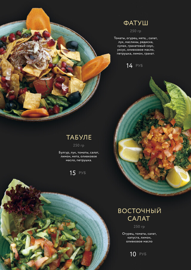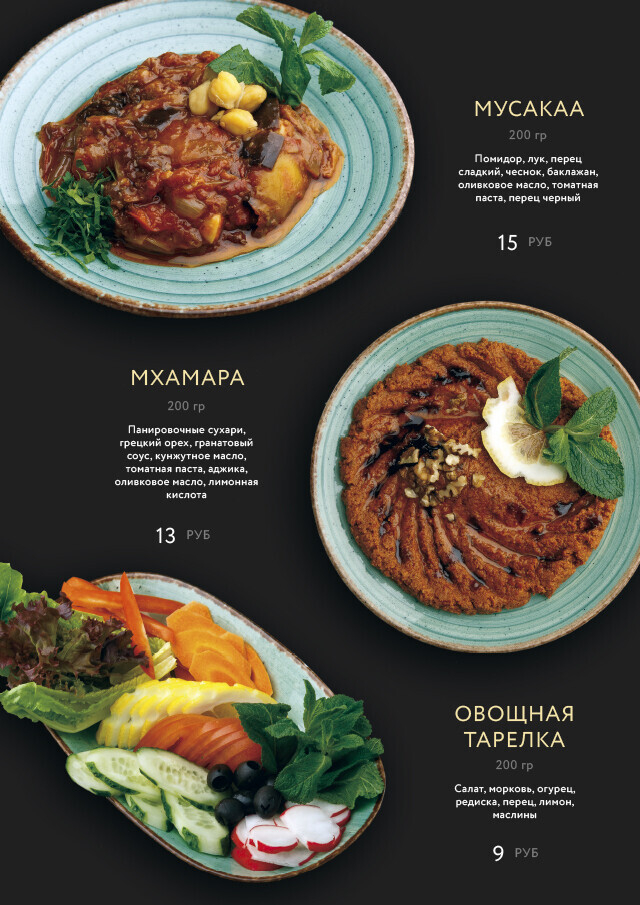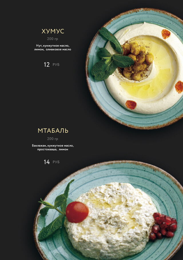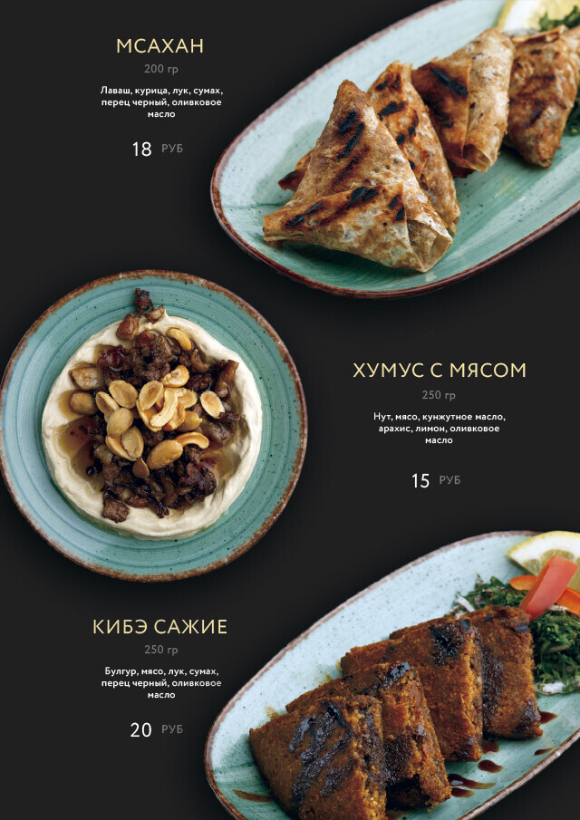 В меню много холодных закусок. В Сирии жарко, местная кухня исторически подстроилась под климат. Горячие закуски слегка адаптировали под вкусы белорусов: остринку в блюдах, например, сделали деликатнее.