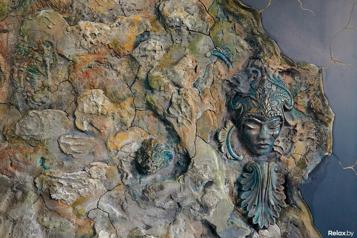 В дизайне много отсылок к названию. Пальмира — старинный город Сирии. Развалины его дворцов и храмов признаны ЮНЕСКО памятником Всемирного наследия. В интерьере вдохновение этим городом стилизовали тонко: в виде отделки из камня. Эту идею скульптор кропотливо воплощал месяц.