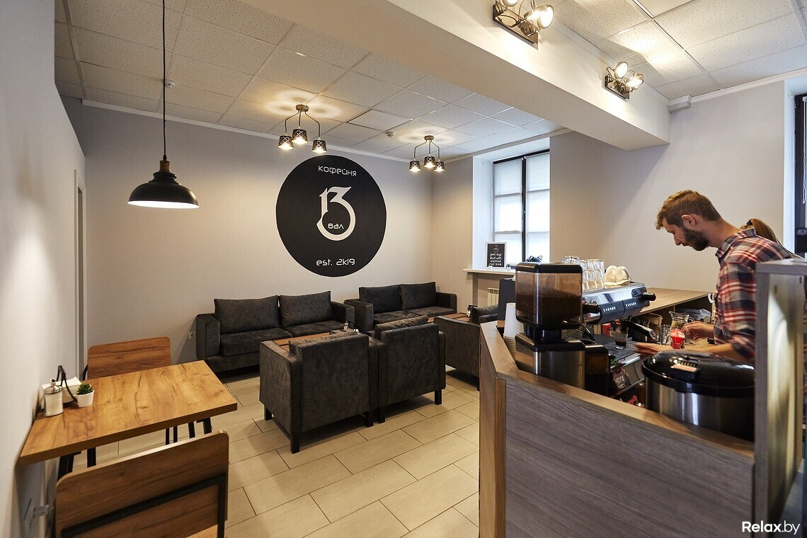 Новая кофейня открылась на пересечении улицы Городской вал, 1 и проспекта Независимости, 13. Отсюда и название — «13-й вал». В 2014 году, когда совладелец Андрей еще только устраивался на должность бариста, здесь открывали кофейню CoolCoffee. Проработала она недолго.