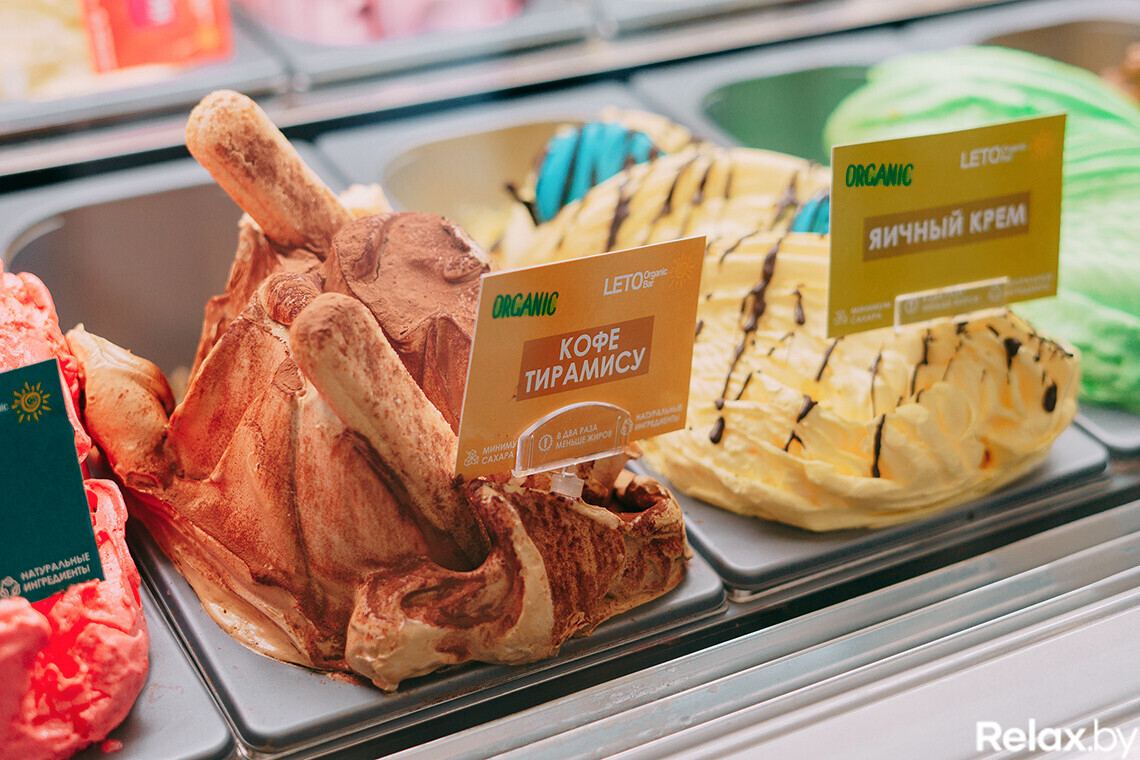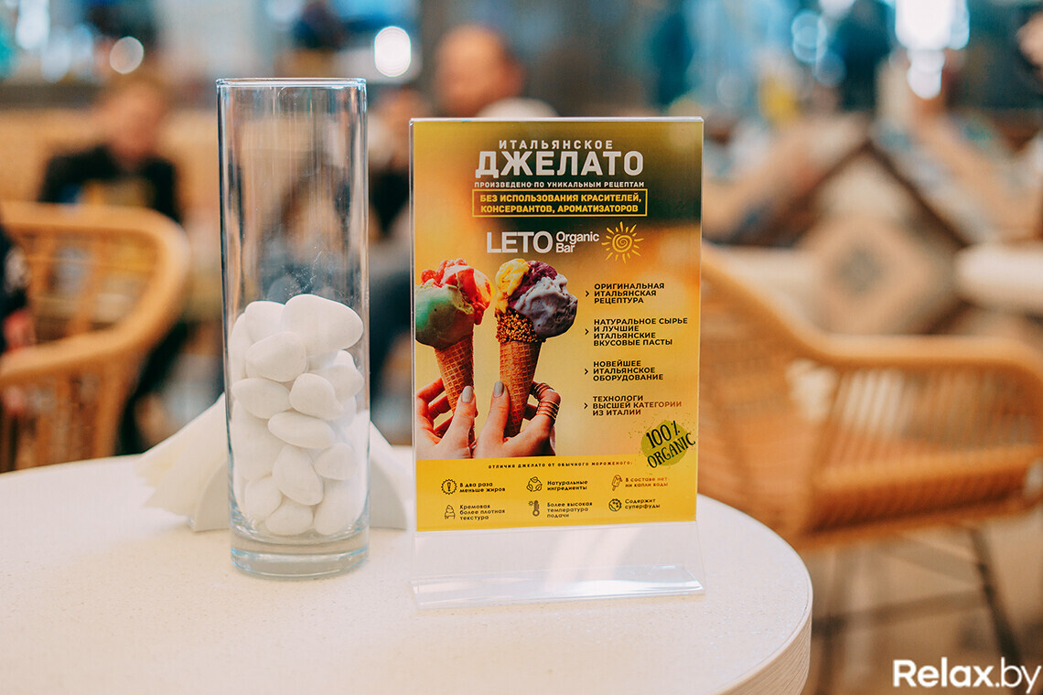 В меню Leto Organic Bar также можно найти джелато — традиционный итальянский замороженный десерт. В заведении джелато готовят с низким содержанием жира, без добавления ароматизаторов, красителей и консервантов. Гостям предлагают 24 различных вкуса на выбор.
