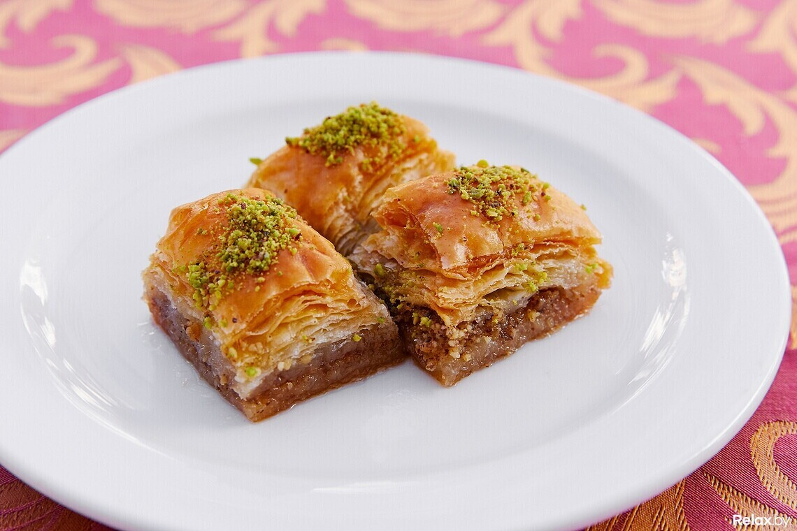 Чечевицу для супа и нут для хумуса привозят из Турции. Активно используют рубиновую специю сумах, которая придает еде характерную кислинку. Ко многим блюдам из меню подается долька лимона. Татьяна объясняет: это не декор. В Турции во многие блюда выжимают лимон, он дополняет вкус. Из десертов можно попробовать домашнюю пахлаву по 6 рублей за 3 штуки.