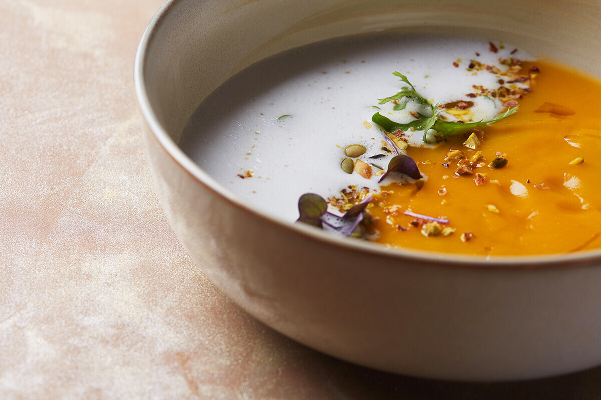 Тыквенный суп-капучино с кокосовой пеной и кофе