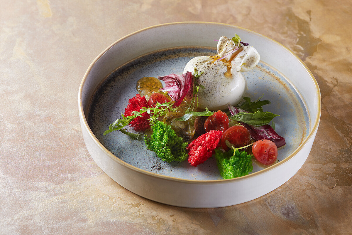 Пять текстур томата с сыром буррата