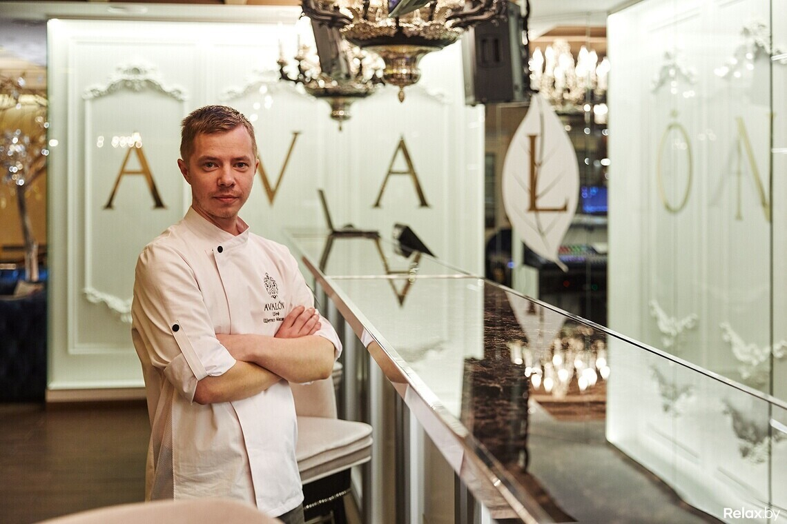 В ресторане-караоке Avalon акцент сделан на средиземноморскую кухню. За нее отвечает Максим Щетко — шеф-повар, который работает в сфере ресторанного бизнеса не первый год. Он стажировался во Франции и Москве, а также успел поработать с разными кухнями мира, в различных заведениях Минска, среди них — Мята Lounge и ресторан Falcone. Разрабатывая меню в ресторане Avalon, шеф-повар и его команда решили остановиться на средиземноморских блюдах.