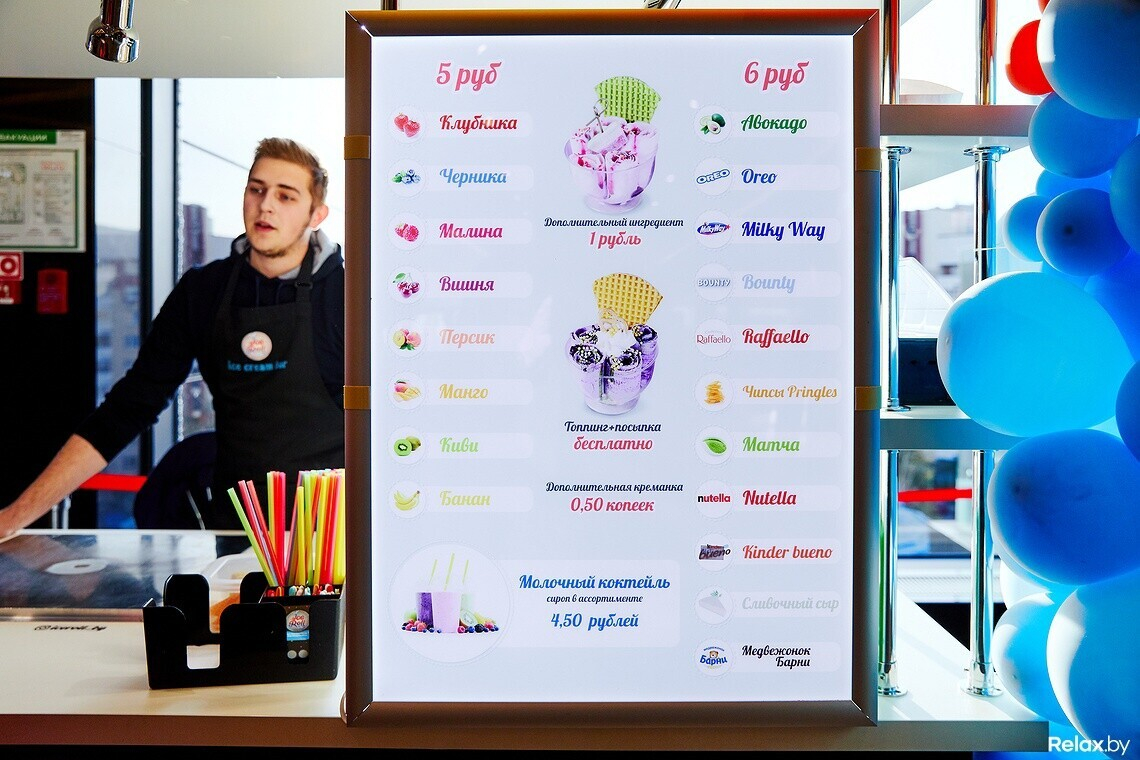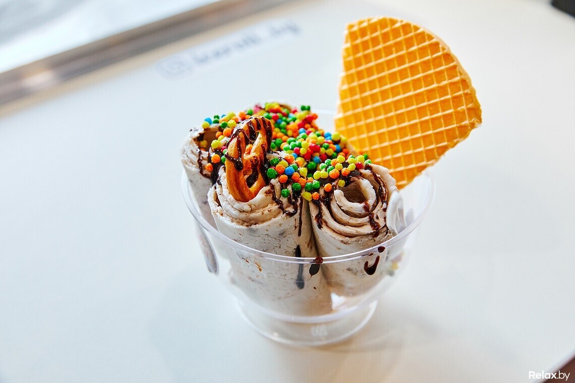 Точки с жареным мороженым Ice Roll работают в минском Diamond City и гродненском ТЦ OldCity. Консультант рассказывает о продукте:
