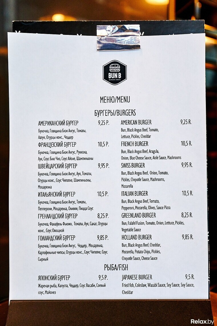Первое небольшое заведение BUN B открывалось на Зыбицкой, 9 рядом с баром Area 51 и пабом Malt&Hops. Владелец заведения — американец Айман, он большую часть жизни проработал в сфере ресторанного бизнеса в США и ОАЭ, в том числе — в коллаборации с известными мишленовскими поварами. В июне Айман уверял нашего журналиста: «Приготовить настоящий бургер может только американец, который знает эту кухню изнутри».