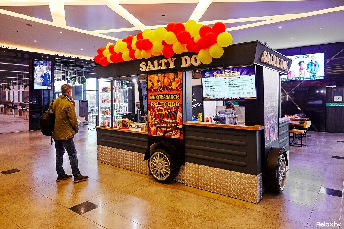 Первая хот-дожная Salty Dog открылась в июне 2017 года на первом этаже Arena City. Тогда хот-доги продавали от 2 до 4 рублей, сейчас ценовой диапазон — от 3,3 до 5,5 рублей. В Galleria точка расположилась прямо на выходе из лифта.