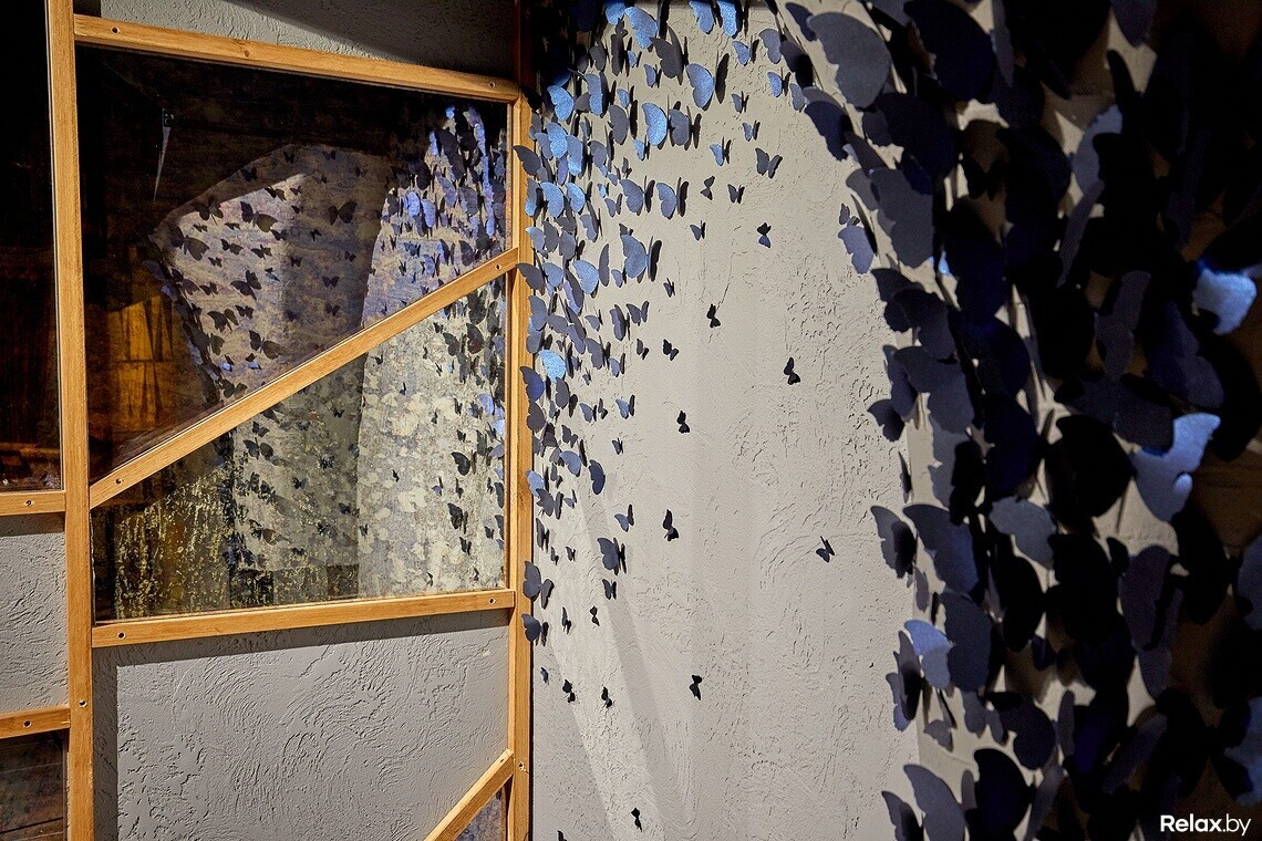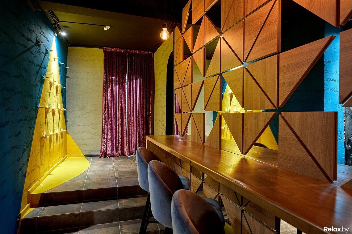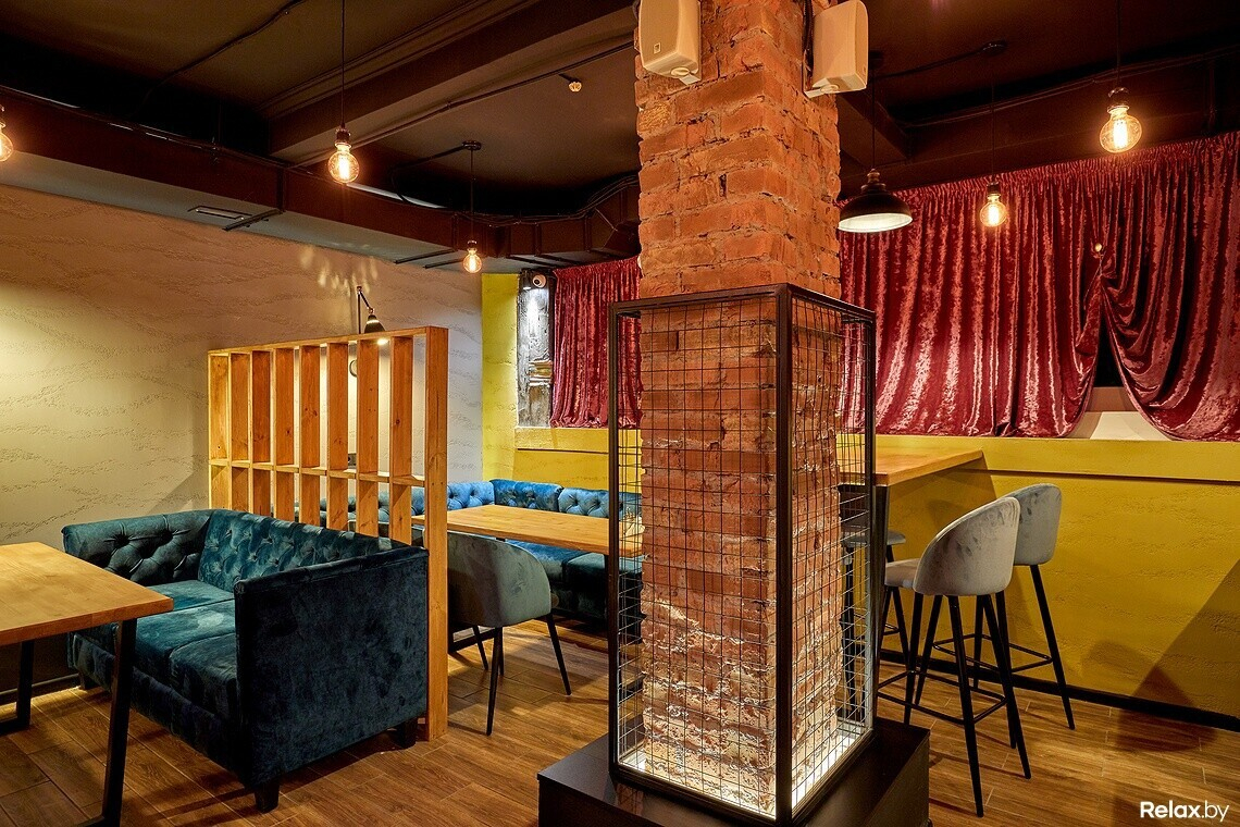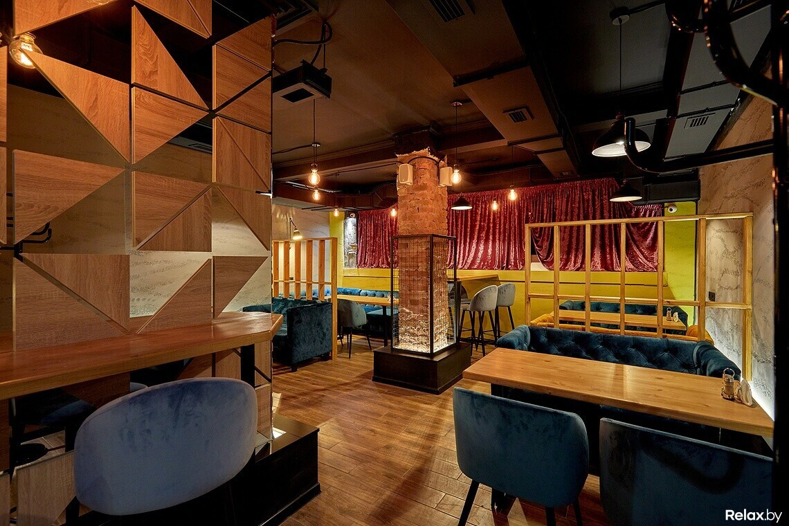 Интерьером в новом лаунж-баре на проспекте Независимости, 44 занимался Алексей Курчаев — известный дизайнер-архитектор, который работал над оформлением гастропаба «Бруклин», Бутик-отеля Buta, ночного клуба Rich Cat, а также пирожковой «Тесто». Алексей помог передать в помещении атмосферу старинного особняка. Ее подчеркивает каждая деталь: ветхие книги, зеркала, плотные портьеры и приглушенный свет. Пространство лаунж-бара зонировано оригинальными перегородками из дерева, которые создают уют и способствуют уединению.