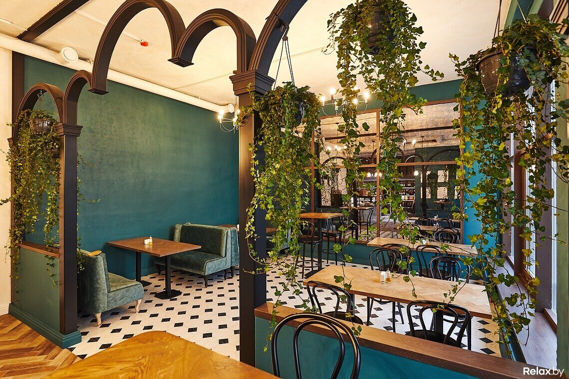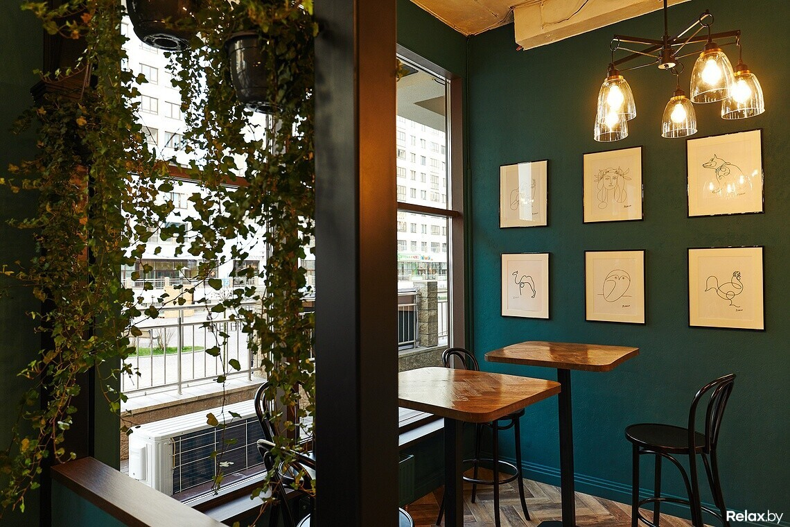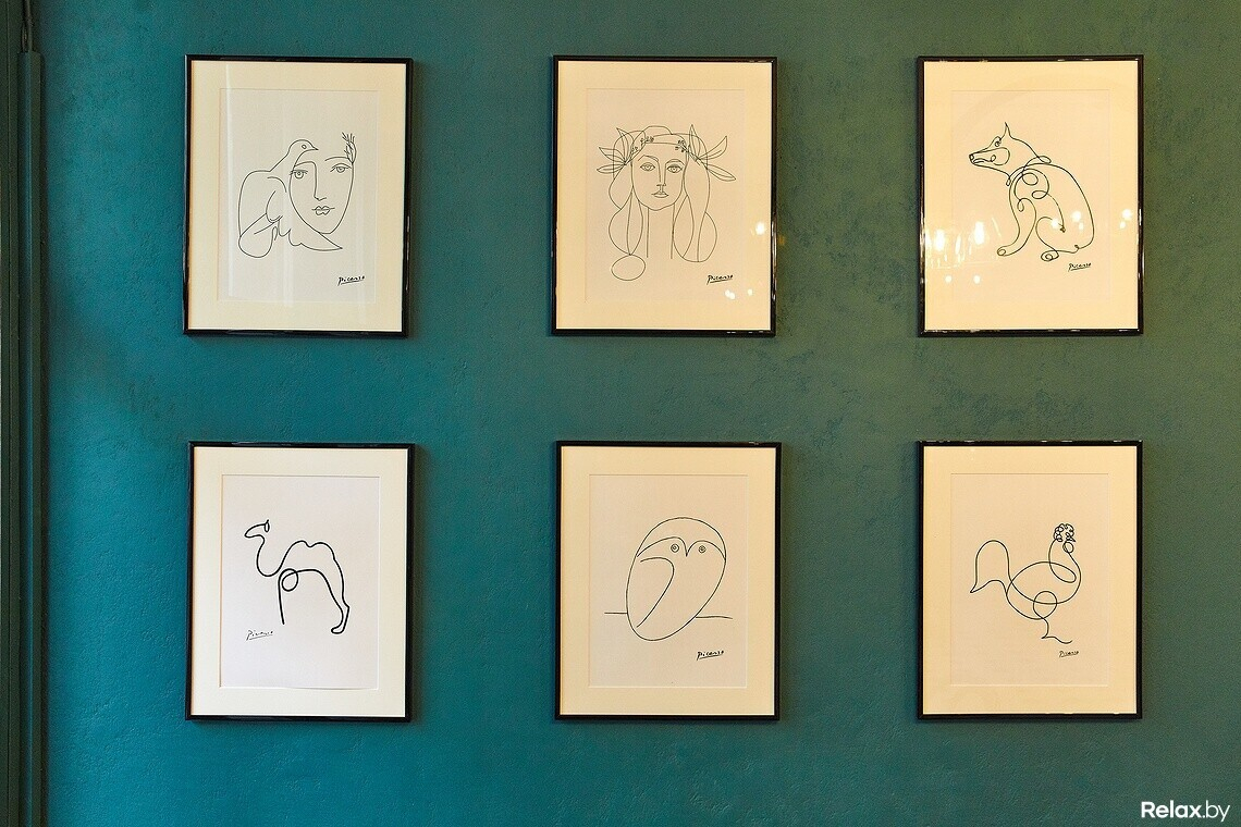 Перед дизайнером стояла задача: сделать демократичное место с акцентом на итальянский стиль. В зале комфортно разместятся от 20 до 25 гостей. Дизайнер использовал дерево, простые формы, насыщенный бирюзовый тон и живые растения. Завершающий штрих — репродукции набросков Пикассо на стенах. Виталий подчеркивает: «Все просто: мы постарались сделать так, чтобы здесь хотелось пить вино».