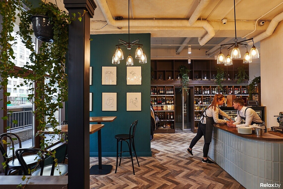 — Неймингом мы подчеркиваем, что это не совсем магазин и не совсем ресторан, — рассказывает соучредитель Виталий. — Это относительно новое для Минска фуд-направление — магазин деликатесов с возможностью продегустировать вино и продукты в зале.