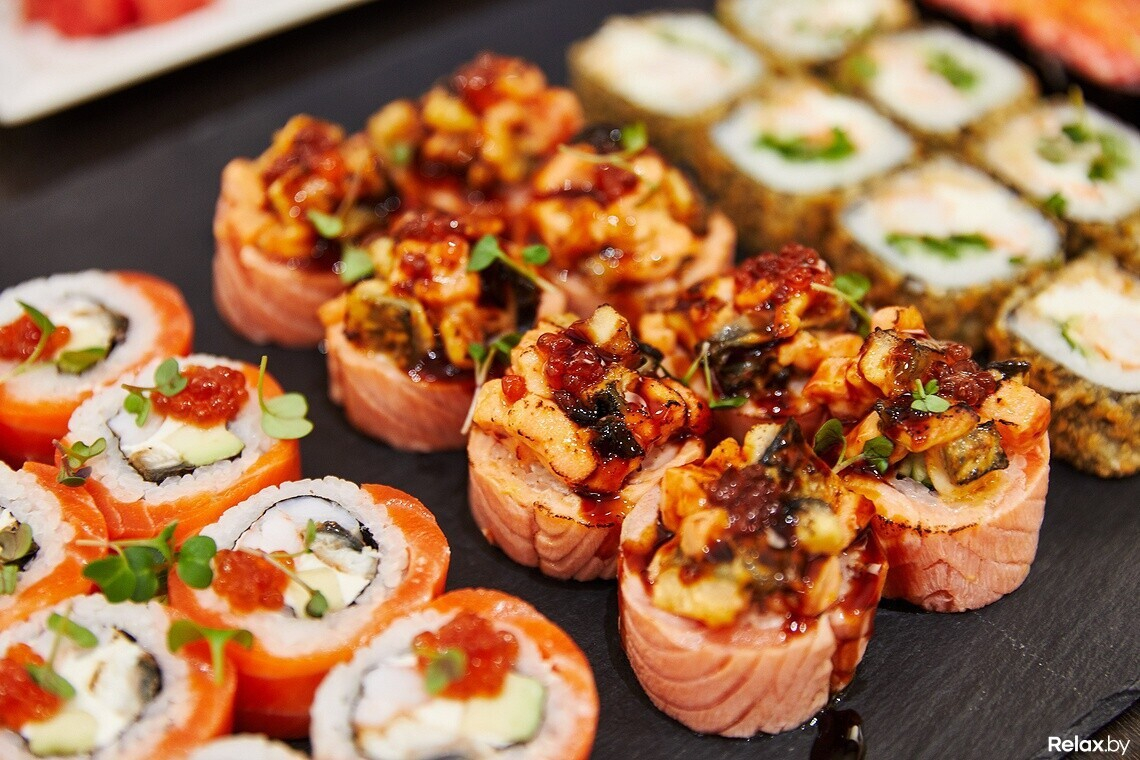 В формате доставки команда работает уже год. Но бар на Мясникова, 34 открыли совсем недавно. Концепт предельно понятен: можно заказать суши навынос и подождать за столиком с чашкой кофе, а можно задержаться с бокалом вина и съесть роллы на месте. Из меню отметим VIP-позиции. Серия состоит из 5 роллов от 20 до 30 рублей. Основательница «Юджын Крабс» делится: «Мы долго думали, стоит ли делать страницу с дорогими роллами. Но решили рискнуть, и неожиданно она стала очень популярной. Самая эффектная позиция — ролл «Дракон». За цену 30 рублей гость получает порцию в 500 г. Сверху на роллы выкладывается тушка угря».