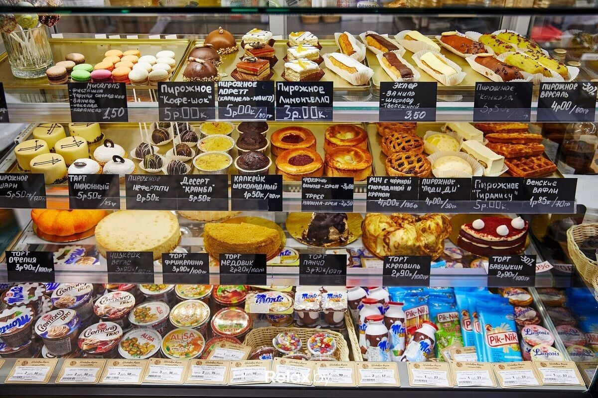 В отличие от большинства конкурентов, этот деликатесный магазин с зоной кафе работает с 7:30 утра. В гастрономии пекут ремесленный хлеб, можно купить австрийский, гречишный, финский, парижский багет, корнбред, тоскано, бокато. С 19:00 по 21:00 выпечка обойдется на 40% дешевле. Классический круассан к кофе или шоколадный капкейк продают за 1,5 рубля. Средняя цена за десерт — 4-5 рублей.