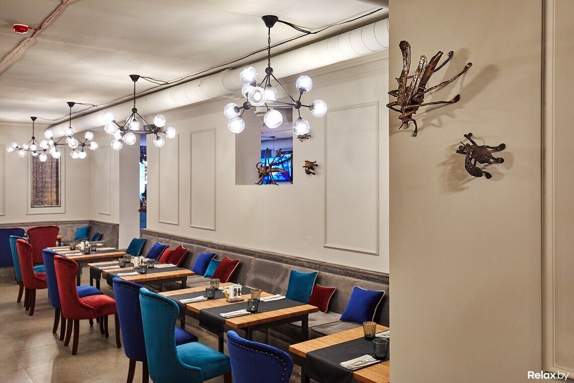 В Минске не так много заведений с испанской кухней, поэтому любителям паэльи стоит обратить внимание на Morella x BAZIS Bar. Это блюдо здесь готовят по классической технологии, используя настоящий шафран. Из итальянской кухни в меню стандартные позиции — паста, пицца, закуски. С 12:00 до 16:00 актуально обеденное меню (средний чек — 6-7 рублей).