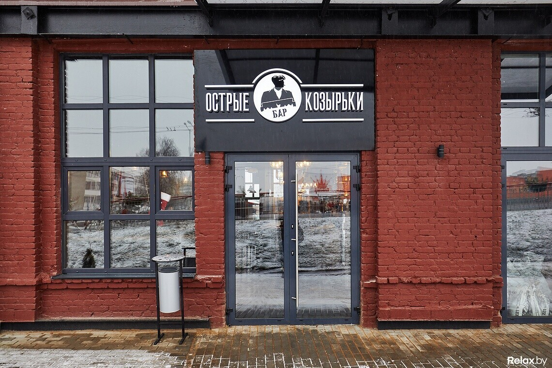 Здесь можно выпить «five o'clock»-чай и выбрать что-то из пивных брендов, собранных со всей Европы. Добавили в ассортимент и модный крафт — более десятка сортов. О пивной карте совладельцы рассказывают так: «У нас 13 кранов разливного крафтового пива. Постараемся подстраиваться под события, праздники, чемпионаты. Играет Англия — будет литься английское пиво. Бельгия — бельгийское». Кухни в заведении нет, но «Острые козырьки» заключили договоры с «Гаражом» и «Зеленой поляной».