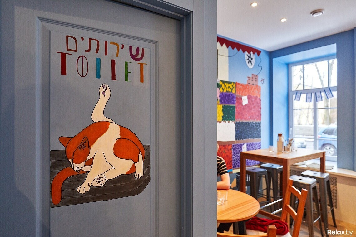 Если Cimes с большего работает в формате быстрого перекуса и еды на вынос, то в Beten Gav будет возможность задержаться: в зале 30 посадочных мест. Название нового места сразу «легло» на формат израильского бистро. В переводе с израильского сленга beten gav означает «живот спина», то есть время для отдыха и релаксации, когда вы не делаете ничего, кроме как переворачиваетесь с одной стороны на другую. Валерия добавляет, что это ей и хотелось отразить в заведении: гости могут ничего не делать — просто наслаждаться едой и атмосферой.