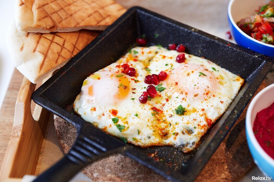 Начнем с завтраков, которые владельцы очень хотели ввести в меню нового места. Из меню Cimes здесь только шакшука, все остальные — новинки. Можно заказать кашу из булгура с курицей, яичницу с нутом в карри, пашот в фалафеле или комплексный завтрак «Бокер Тов» (смотрите фото ниже). Также рекомендуем попробовать пончики суфганиет, которые в Израиле принято есть на еврейский праздник Хануку. Диапазон цен на завтраки — от 2 до 11 рублей.