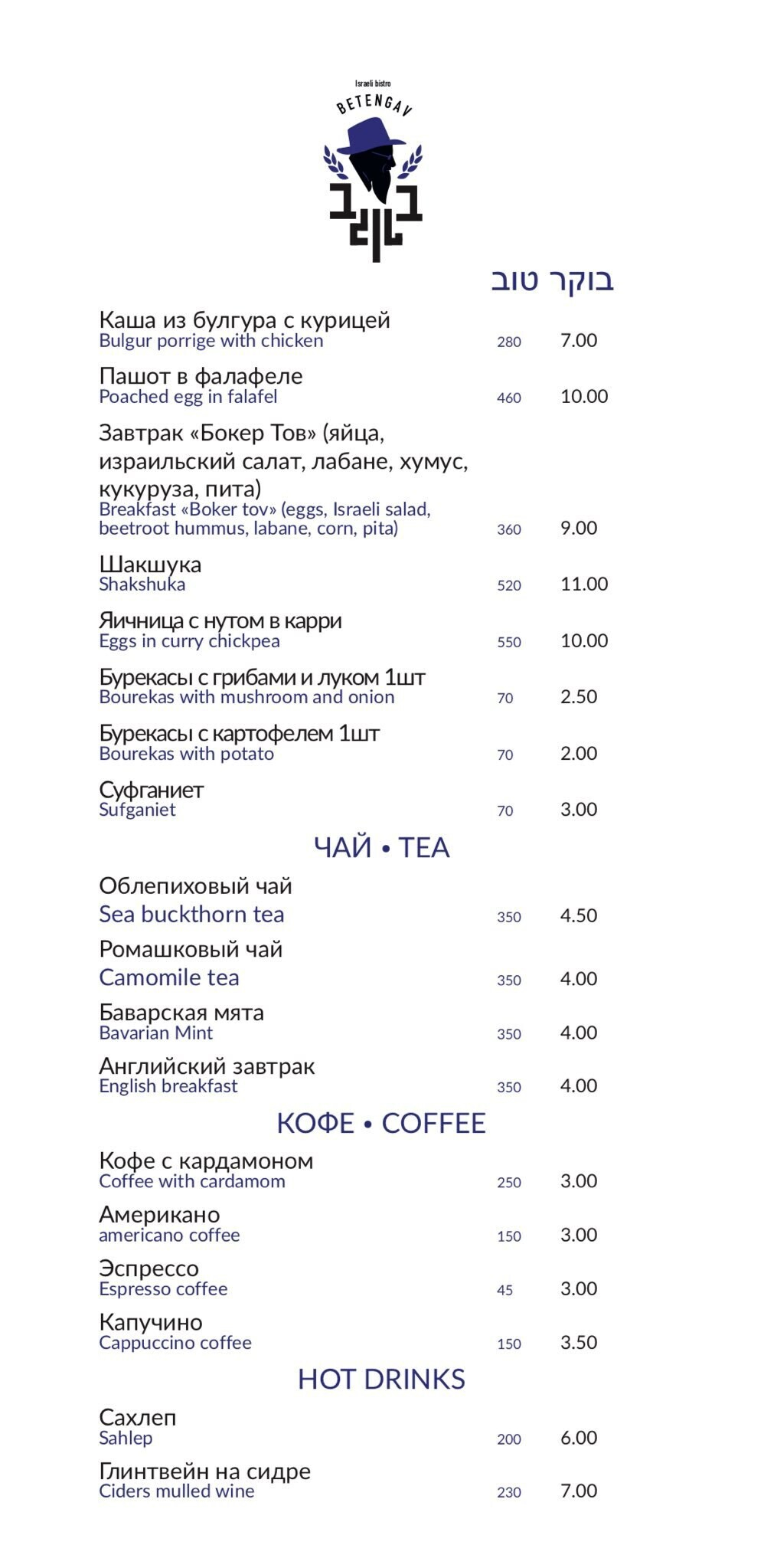 Основное меню пока стартовое, его еще будут расширять. Шеф-повар Beten Gav поедет на обучение к Михаилу Чухареву в Питер, откуда точно привезет новые рецептуры.