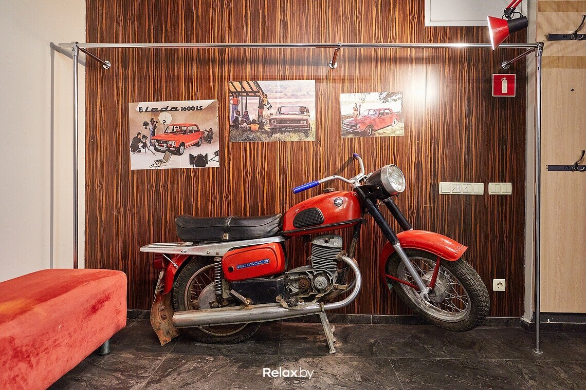— В случае с барахолками все очень преувеличено, там не так уж и просто найти толковую вещь советского периода, — рассказывают в баре. — Либо хлам, либо дорого. Обращались, в основном, к частным коллекционерам. Некоторые вещи привозили из дальних городов и деревень в Беларуси: например, мотоцикл, который стоит в зоне уборных.
