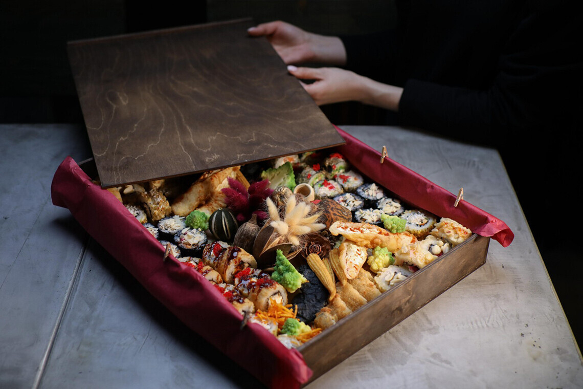 Антон рассказывает: идея появилась спонтанно, но выросла из желания быть полезным клиентам. Знакомые и гости суши-бара в Фаниполе не раз говорили о том, что доставка — универсальный вариант для любого праздника. Не хватало лишь… «изюминки» — детали, которая бы сделал обычный сет праздничным.