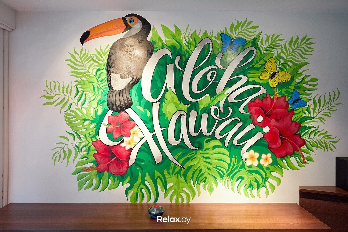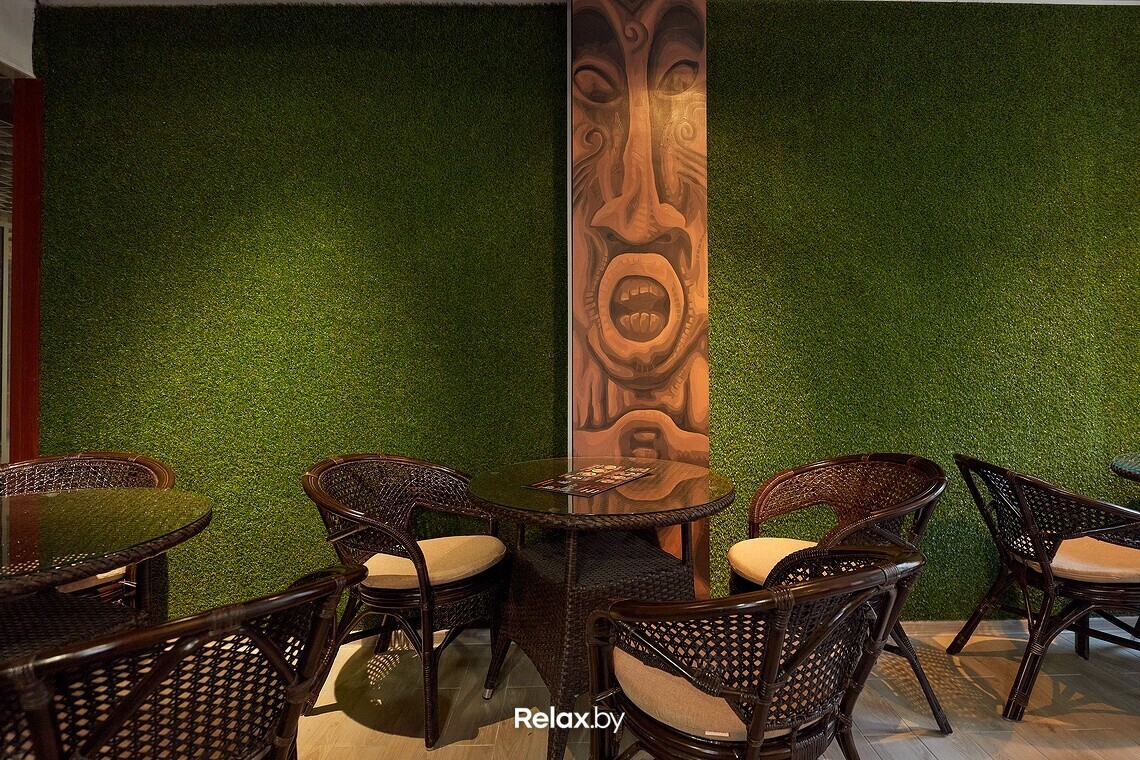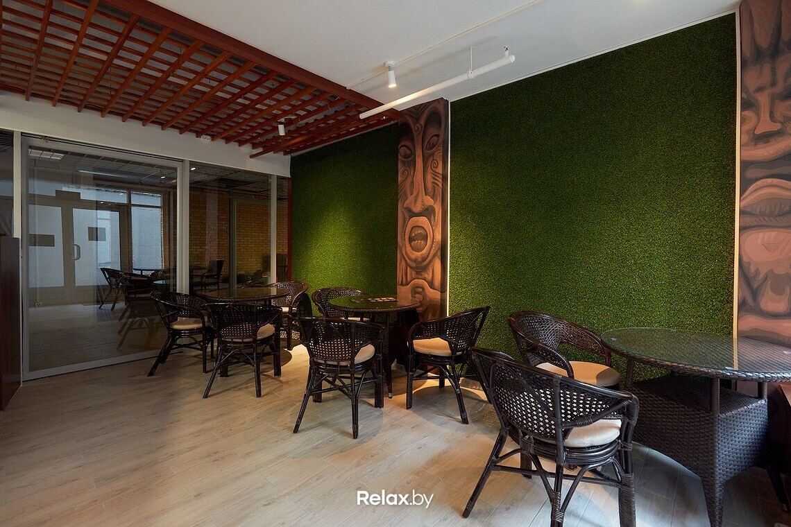 На площади 27 квадратов уместилась открытая зона для приготовления и пара столиков с плетеными стульями. Намек на гавайскую историю считывается в ручной росписи стен и колонн. Влад подчеркивает: «Не хотелось перегружать пространство, поэтому выбрали минимализм».