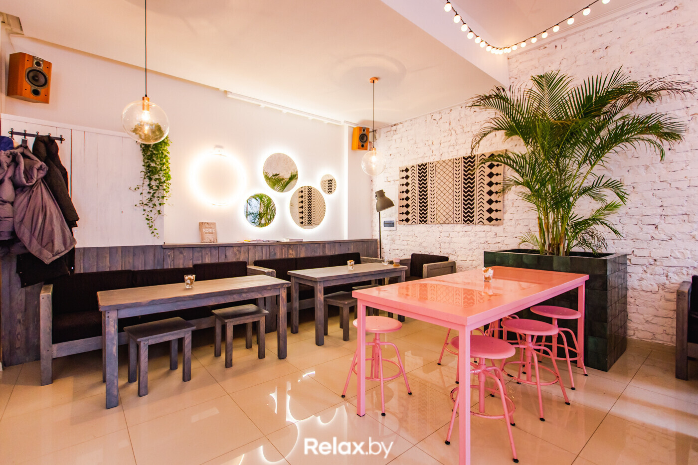 В интерьер «Мануфактуры» внезапно ворвался розовый цвет, в зале на 24 посадочных места появилась зелень, от старой обстановки сохранилась разве что лаконичная деревянная мебель. Атмосфера перестала быть ламповой: пространство наполнили светом.