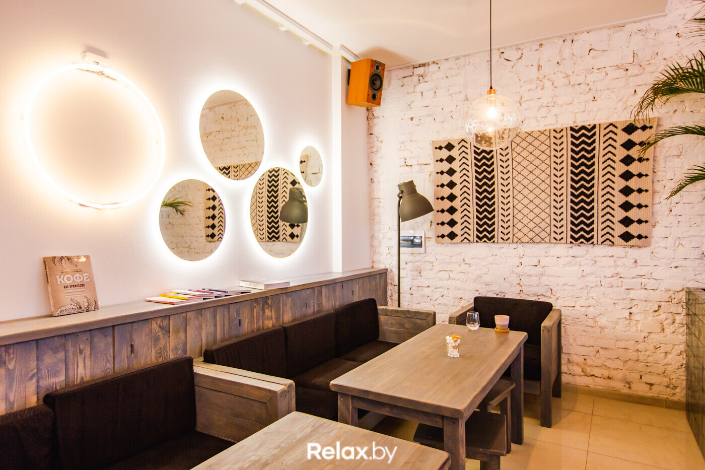 Вероника: История нашего нового интерьера началась с того, что после закрытия появилась необходимость визуализировать бренд обжарки. С графическим дизайнером Юлией Счастной мы создали лого и от него уже выстраивали интерьер. Мы понимали, с какими сложностями столкнемся после капитального ремонта. Это было не переоткрытие. По сути, это было открытие кофейни заново.