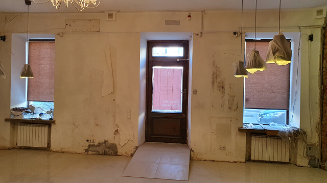 На ремонт ушло более 3 месяцев. Несмотря на то, что дом подвергся капитальному ремонту, помещение досталось ребятам в разрушенном состоянии. Теплоузлы и коммуникации здания находятся под кофейней, поэтому полы пришлось вскрывать. Ольга вспоминает, что здесь была полная разруха, вид помещения удручал.