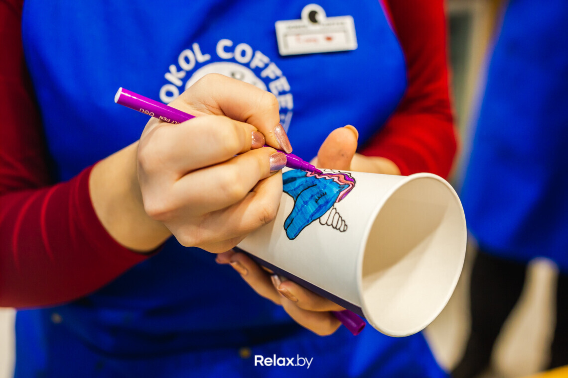— В команде, кроме бариста, работают еще два художника. Именно они в течение нескольких минут старательно изображают ваш портрет или другой рисунок на стаканчике. Время ожидания напитка затягивается на пару минут, поэтому, если у гостя нет времени и кофе необходим как можно скорее, он может отказаться от услуги, — уточняет Павел.