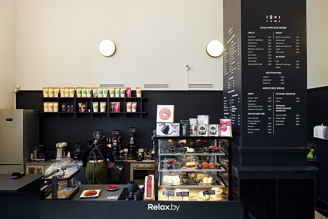 «1801» — кофейня так называемой «третьей волны». Здесь продают крафтовые десерты собственного производства и работают с альтернативными способами заваривания кофе (кемекс, воронка, аэропресс и др.). Евгений отмечает, что в обжарке на производстве находится более 50 сортов кофе.