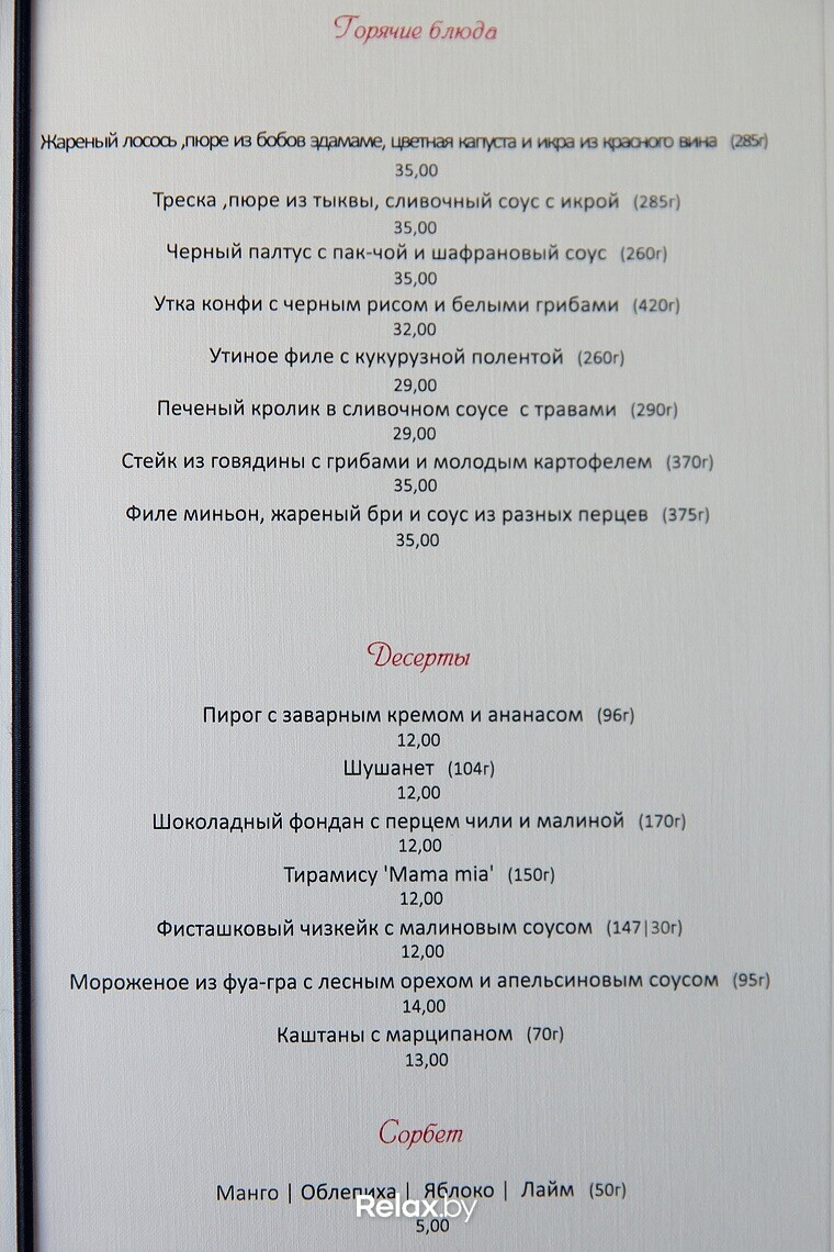 В меню гастрономическая классика, а значит упор на французские технологии приготовления. Используем много сливочного масла, вино, овощи по сезону.