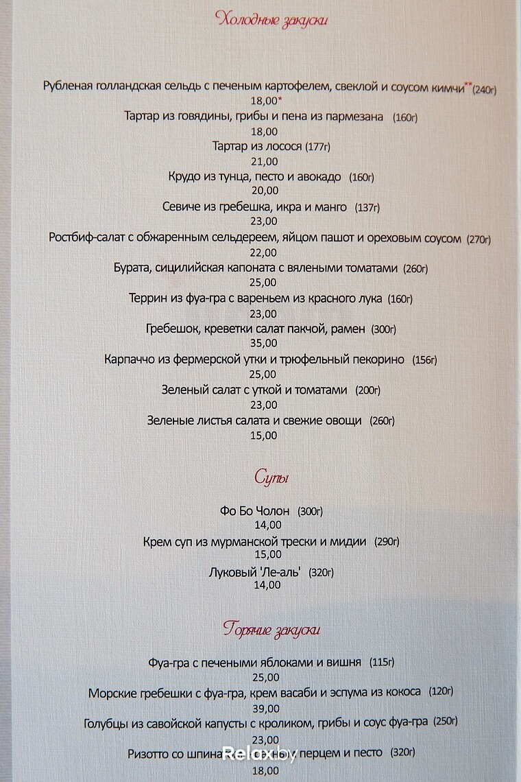 — Одно из ключевых блюд в меню — луковый суп по старинному рецепту, который когда-то нашли в архивах французского района Ле-Аль, — рассказывает управляющий. — Безусловно, даже классическое блюдо шеф-повар пропускает через свое видение. Поэтому веяния определенных трендов в нашем меню проследить можно: например, акцент на ЗОЖ или нотки Востока или Азии, которая последние лет десять то со спадами, то со взлетами заметно влияет на мировую гастрономию.
