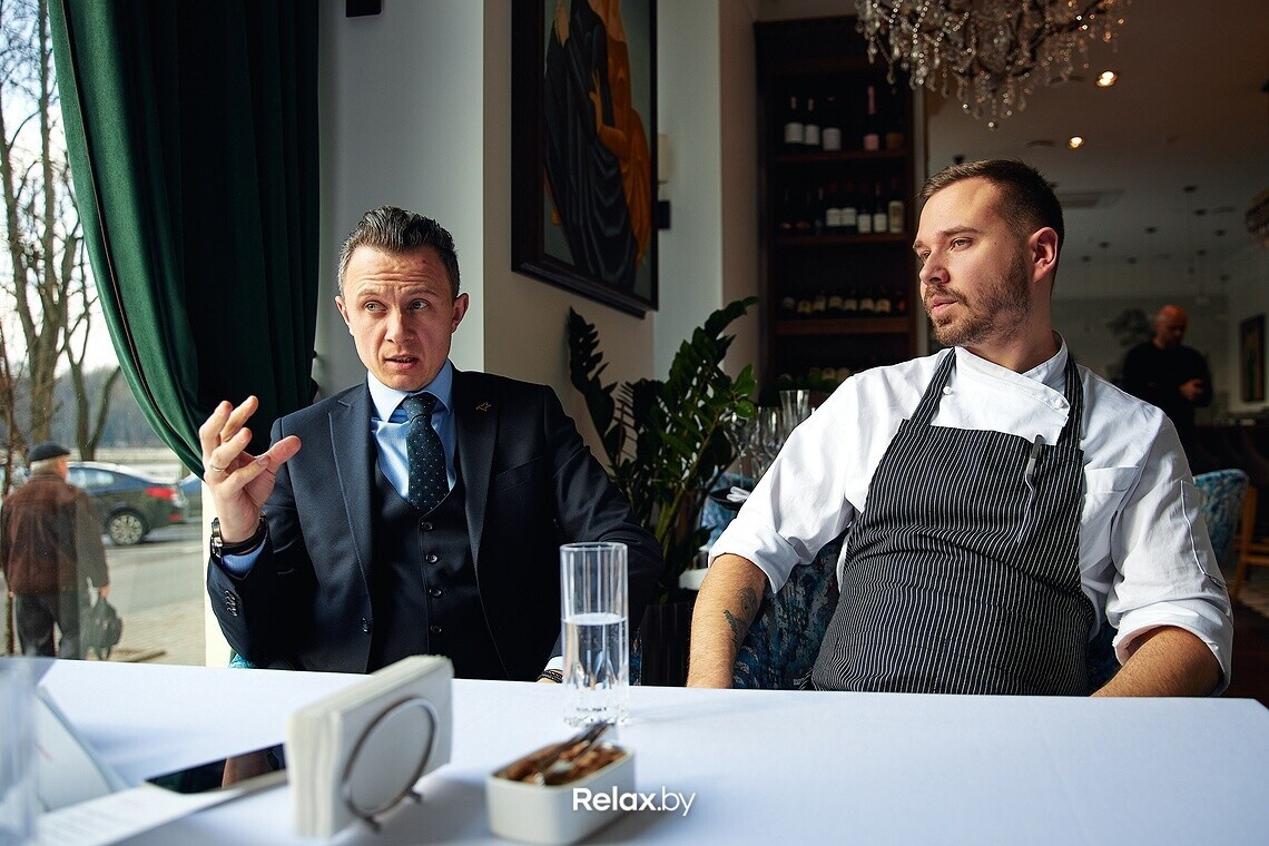 — В индустрии гостепримства мы с Сергеем давно, — рассказывает управляющий Денис. — Работали в разных заведениях, прошли все этапы, начиная от официанта и бармена до администратора и метрдотеля. В Минске довольно долгий период профессионального развития пришелся на ресторан La Crete d′Or на Ленина, 3, который открылся в 2006 году и в 2017-м кардинально сменил формат на городское кафе. Мы уже тогда понимали, что город испытает нехватку в хорошем классическом ресторане. Так и случилось.