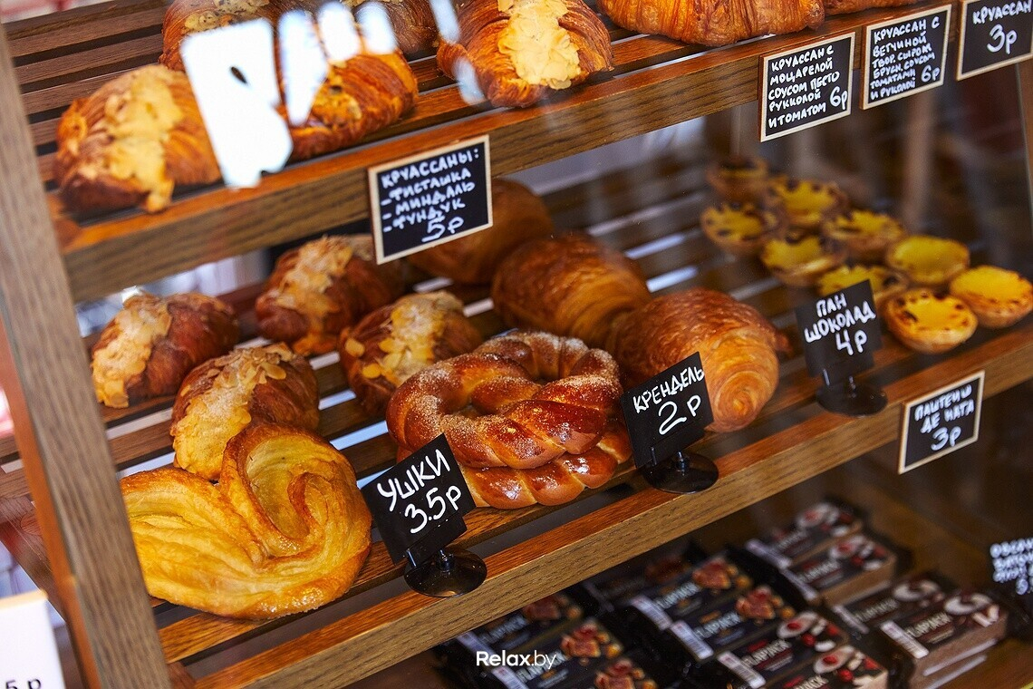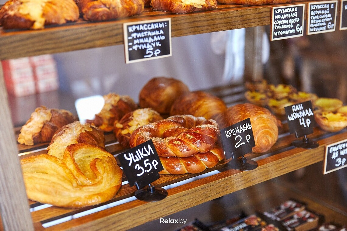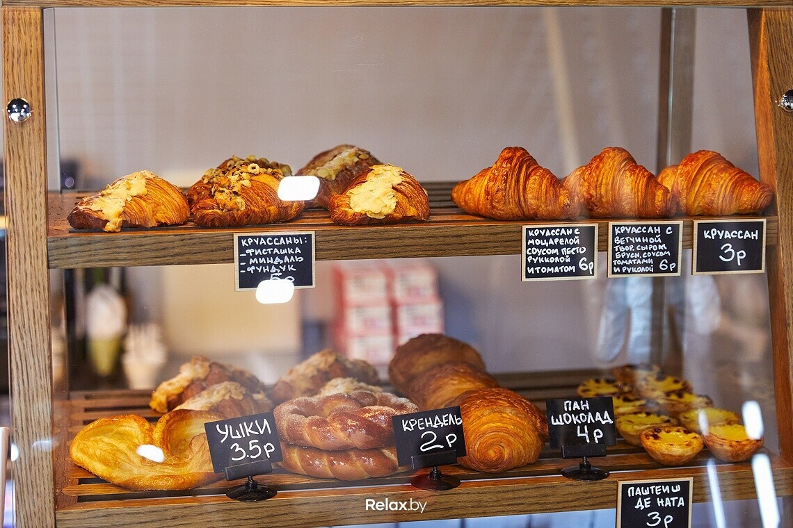 Десертов в кофешопе нет, зато неплохой выбор свежей выпечки от известных крафтовых производителей — LЁN и Brø bakery. В топе продаж — круассаны и паштейши. Михаил не исключает, что в ассортименте появятся хлеб и багеты.