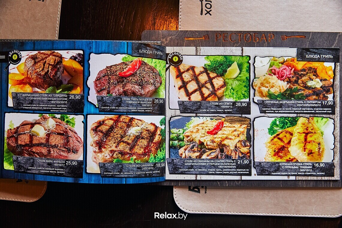 В заведении есть открытый гриль: посетители могут наблюдать за процессом готовки мяса. А с 11:00 до 16:00 здесь действует недорогое ланч-меню.
