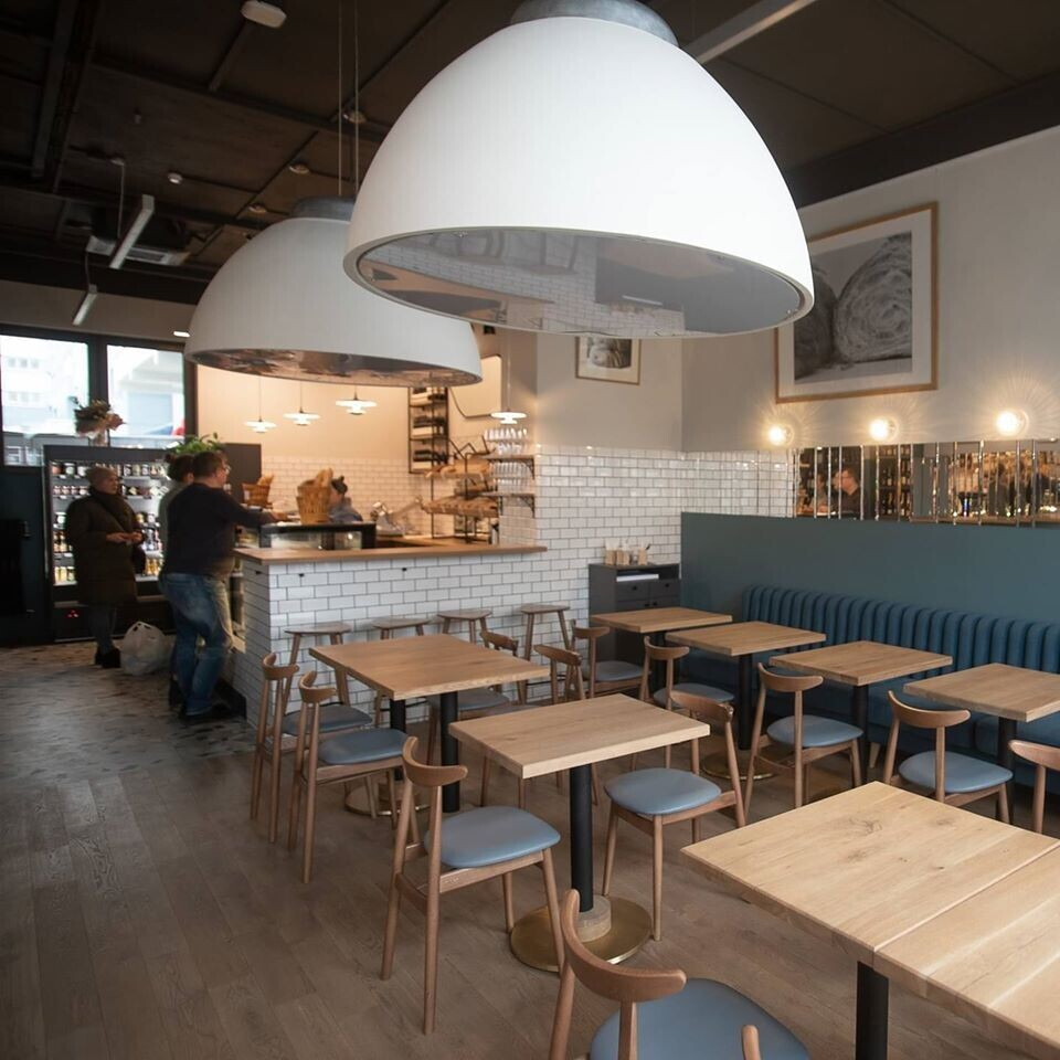 Почти каждый минский любитель ремесленного хлеба наверняка стоял в очереди на Марьевской, 5а, где находится производство Brø Bakery. В начале апреля открылся их новый проект в европейском формате «кафе у дома» с хлебом и выпечкой навынос. Дизайн-проект разрабатывала Ирина Налимова (Grand Cafe, Bistro de Luxe, Times cafe и др.). Много дерева и зеркал, белая плитка, мягкие оттенки бирюзового — получилось уютно.