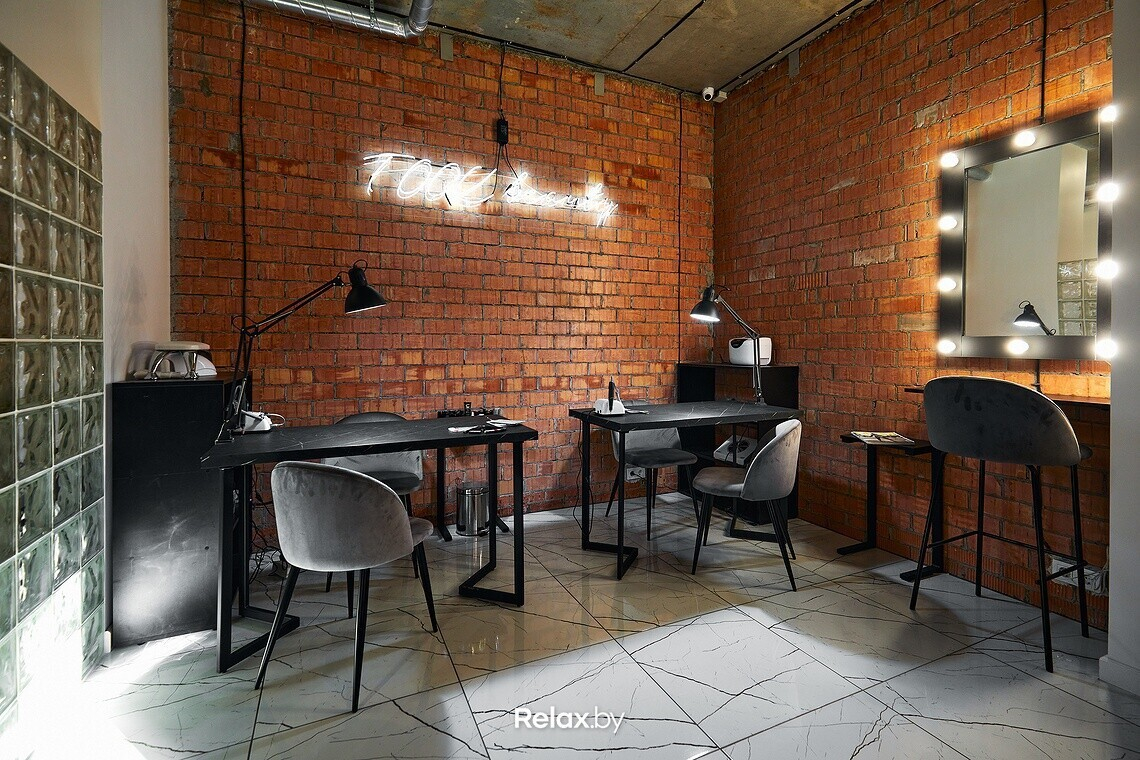Проект интерьера совладелица разрабатывала без помощи дизайнера. Условный брендбук включает в себя стиль лофт и пудровые розовые тона. В заведении отмечают: «Идея совместить beauty и кофе лежала на поверхности. Получилось место, куда можно прийти с подругами на чашечку кофе, позавтракать, сделать маникюр или даже организовать девичник».