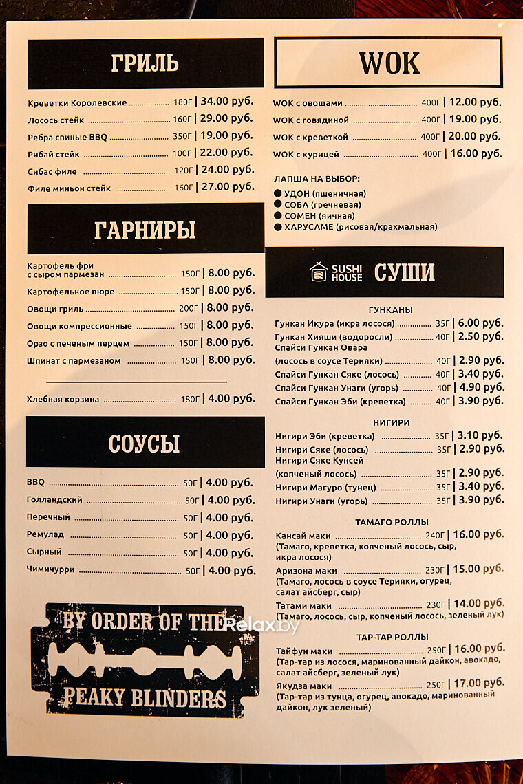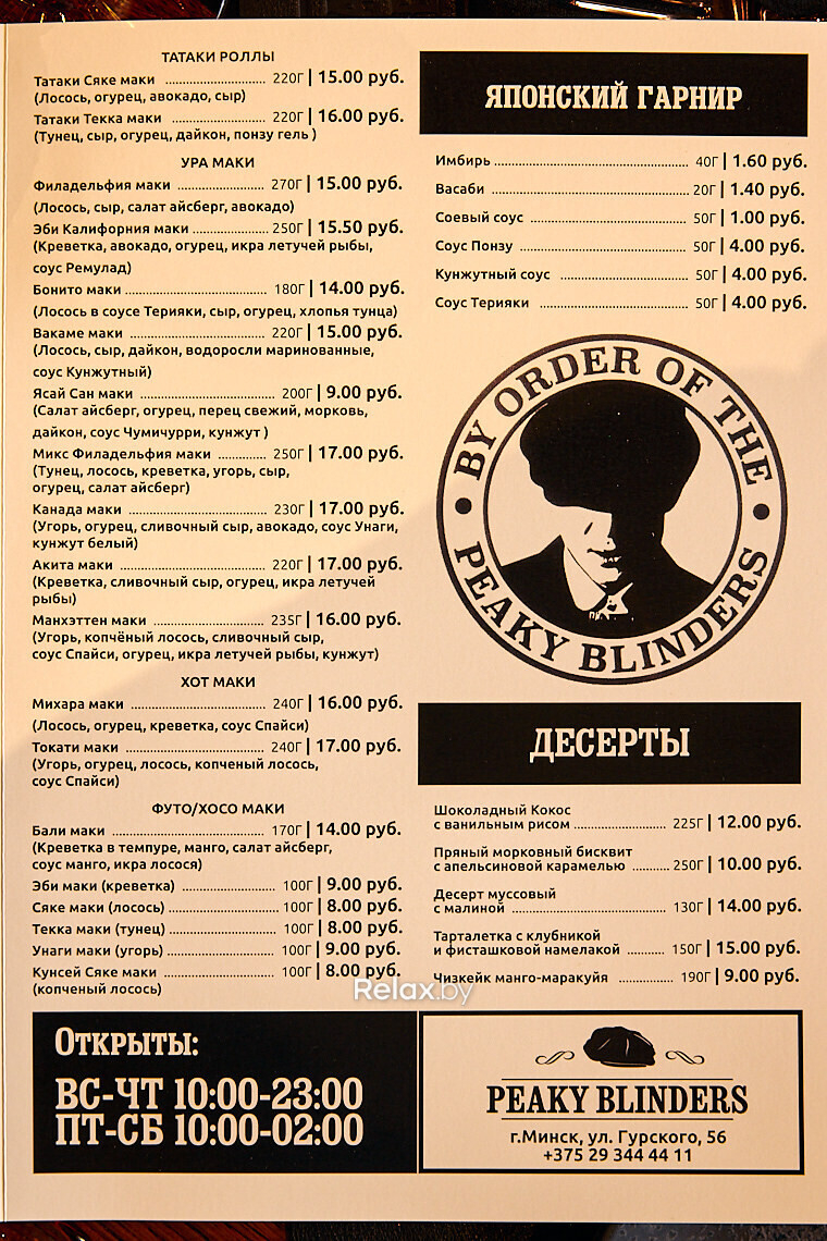 На прошлых выходных на Гурского, 56 открылся один из самых масштабных ресторанных проектов за последние два месяца. Peaky Blinders — локация с авторской кухней. По словам учредителей, гастрономическую классику здесь смешали с современностью. И все это под соусом «оur kitchen — our rules».