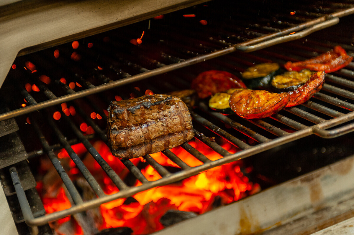 Одна из фишек заведения — печь на древесном угле закрытого типа. Каждый главный продукт в блюде, который подвергается тепловой обработке, попадает на гриль и насыщается ароматом древесного угля. Александр рекомендует: