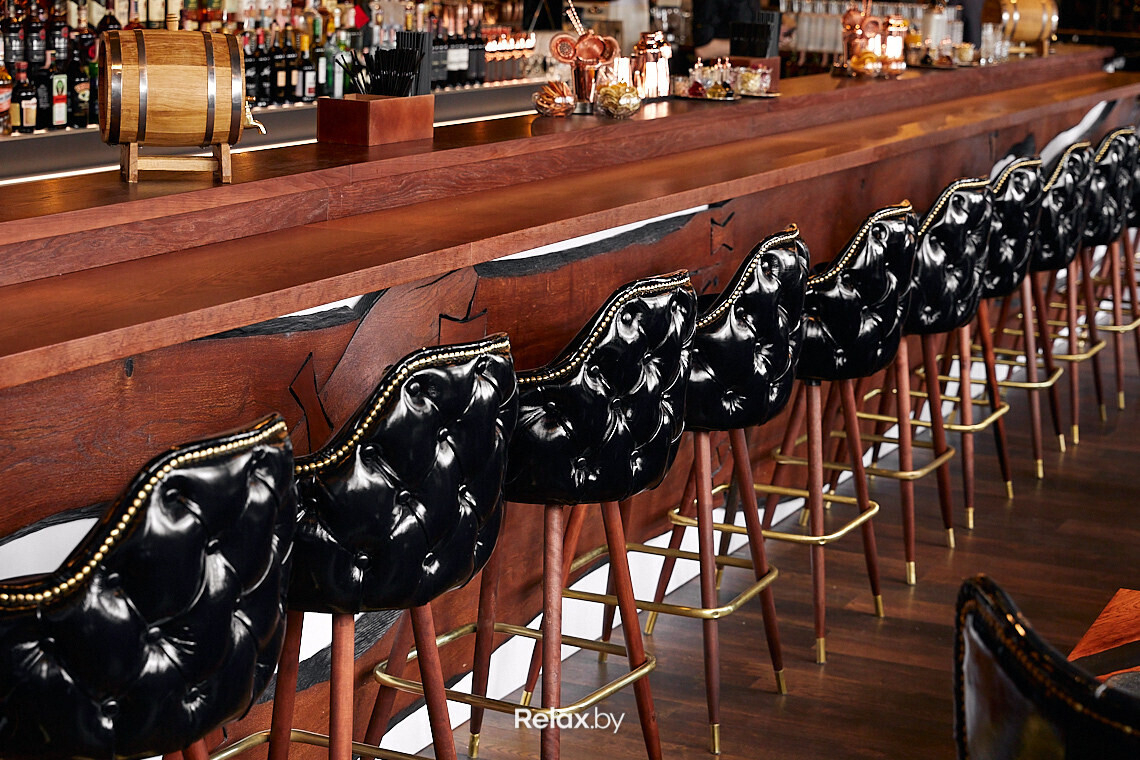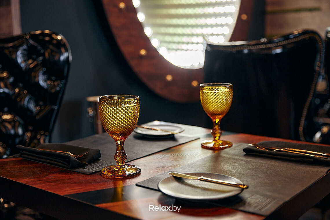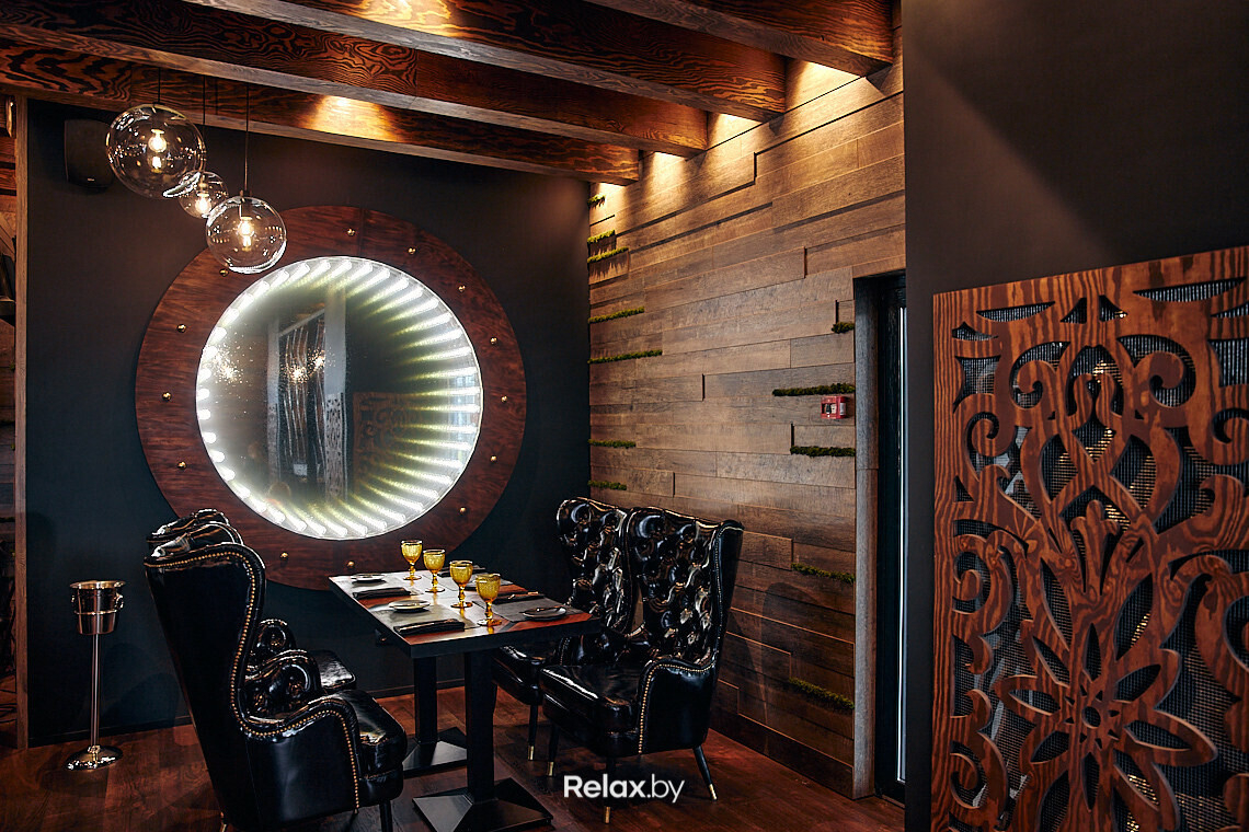 — Интерьер получился в меру строгий, шикарный, стильный и даже немного домашний. Мы использовали много дерева — настоящего дуба, эпоксидную смолу, лакированную кожу, зелень, элементы цвета латуни... Даже столовые приборы индивидуально заказывали из Италии, чтобы получить нужную форму и цвет. Иными словами, в интерьер вложена душа, которая отражается и в общей атмосфере.