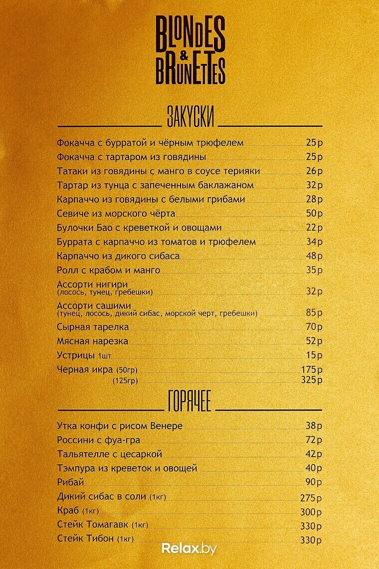 Теперь в «Блондинках и брюнетках» кухня полного цикла с упором на Европу и Азию. Обратим внимание на тальятелле с цесаркой (42 руб.), булочки бао с креветкой и овощами (22 руб.), тартар из тунца в нетипичной подаче в баклажане (32 руб.) и фокаччу с бурратой и черным трюфелем (25 руб.). Мария рассказывает, что этот вариант меню неокончательный: оно будет обновляться каждые три месяца. В ближайшее время, например, начнут готовить пиццу с трюфелем.