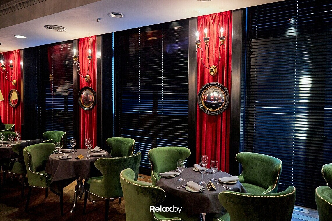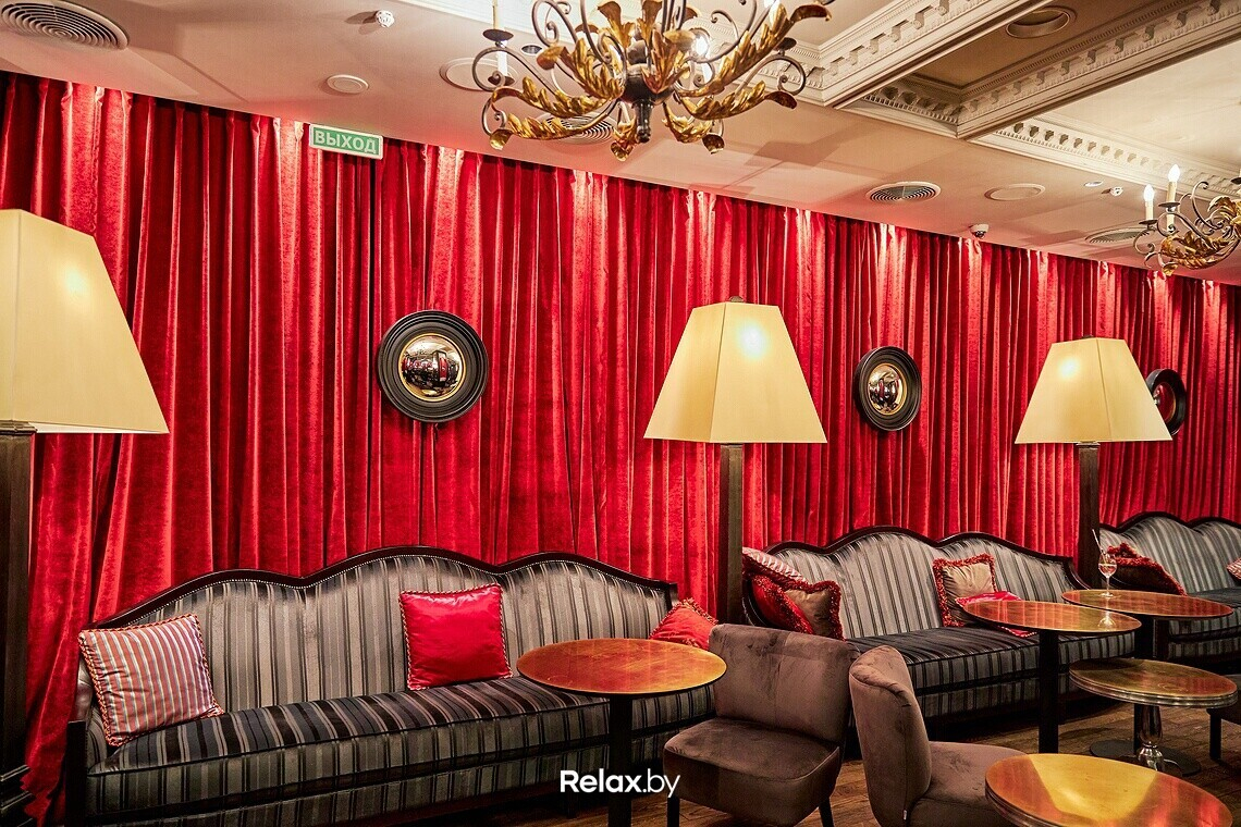 На самом деле, основные штрихи в дизайне сохранены: два зала, округлая барная зона, все те же сверкающие люстры. Однако с помощью дизайнера Олега Капустина кардинально поменялось зонирование: подиумы сменила мягкая ресторанная посадка. Общая посадка, включая VIP-зону, — 180 человек. Предугадывая ваш вопрос, отвечаем: сохранилось и то самое зеркало между мужской и женской уборными.