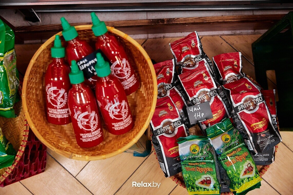 Одной из отличительных особенностей PhoBo стал мини-рынок, разбитый у прилавка. Здесь можно еще больше окунуться в атмосферу ханойских улиц, прикупив в качестве вкусного сувенира соусы, чай либо кофе, лапшу, спелый вьетнамский манго, желе и многое другое.