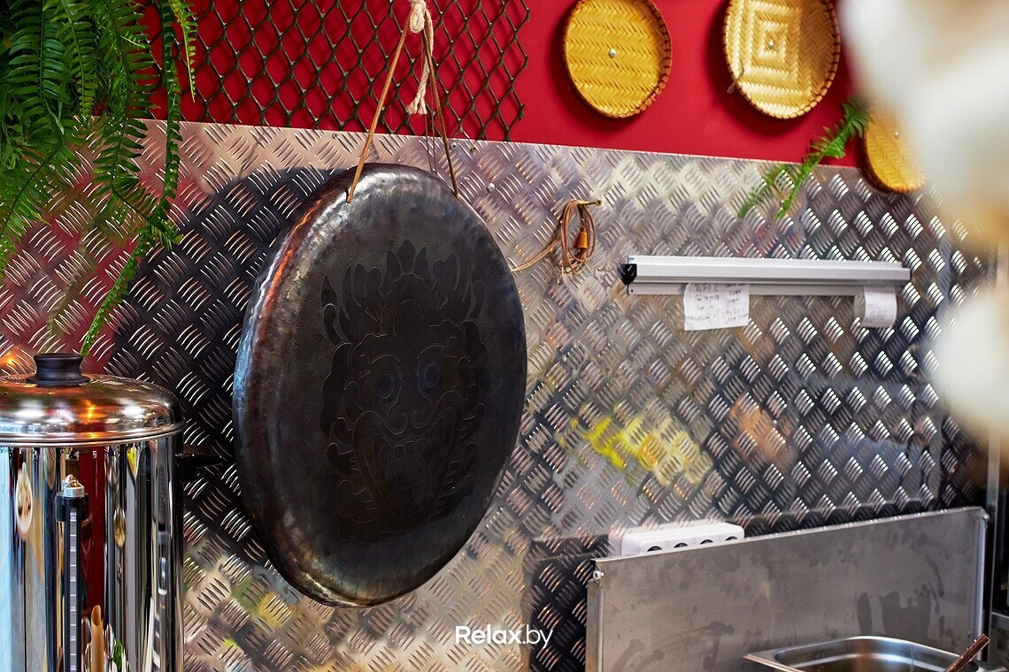 Время от времени в кафе звучит гонг. Так отмечают каждую заказанную большую порцию фо-бо. Гонг сделан вьетнамским мастером: в сети заведений оригинальная утварь и продукты — отличительная черта. Благо, во время пандемии каналы поставки не были перекрыты полностью, отмечает Верас Акулин.