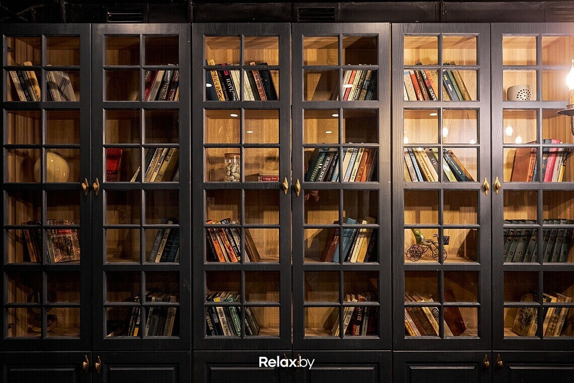 Вся концепция заведения выстроена в окололитературной тематике. Один из залов — «Темный» либо «Каминный» — привлекает внимание классическим книжным шкафом во всю стену. Со временем полки будут заняты преимущественно произведениями Чарльза Диккенса, а счетницы будут оформлены, как книги.