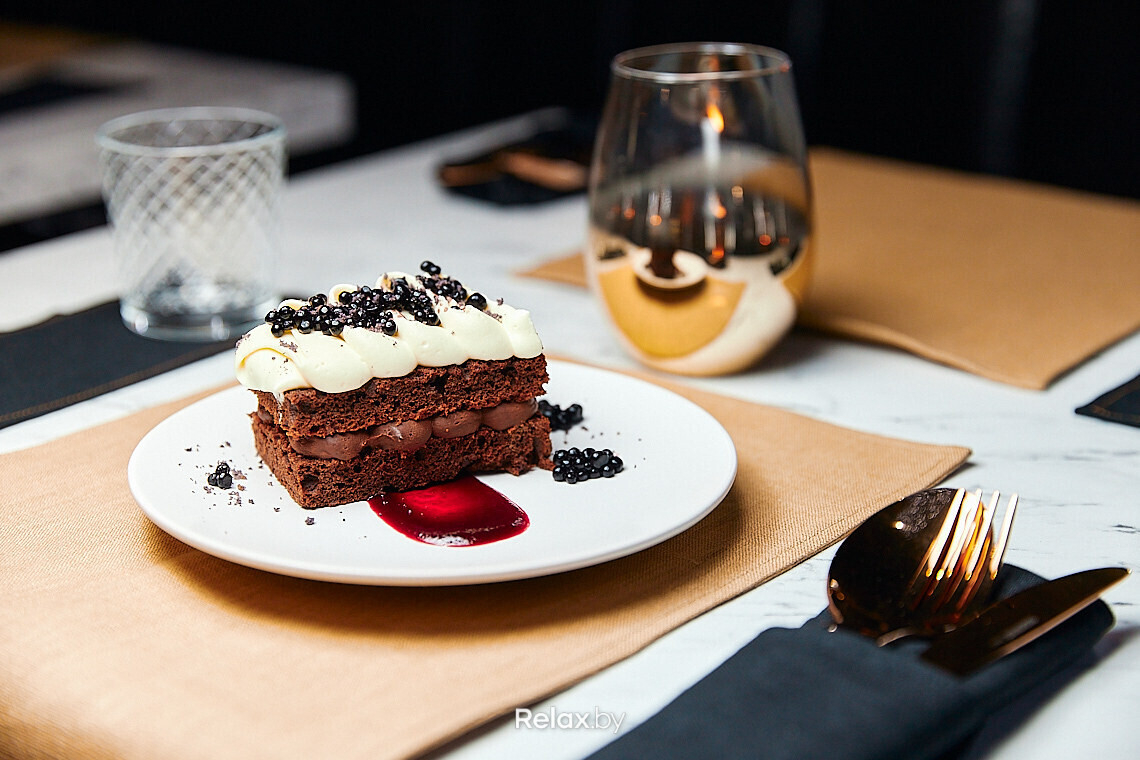 Отдельное внимание — десертной карте. Можно попробовать клюквенный мусс с ромом, морковный десерт с сыром горгонзола, лимонно-лаймовый чизкейк или шоколадный десерт (все по 14 руб.). В ближайшем будущем в баре планируют разработать гастрономические сеты: десерт плюс авторский коктейль.