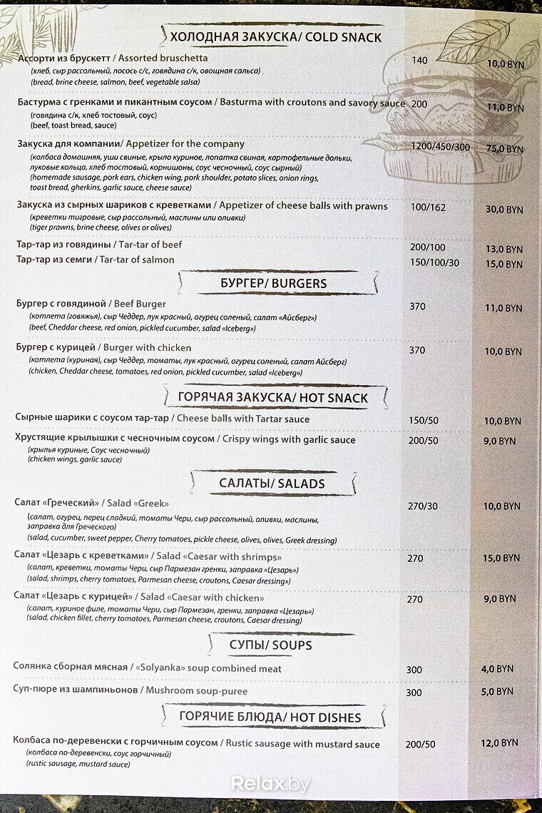 — Этот напиток популярен во многих странах. В Беларуси достаточное количество крафтовых пивоварен, и нам есть, что показать гостю, — рассуждает собеседница. — Мы решили сопроводить пенное не только привычными закусками и снеками, поэтому создали расширенное меню с блюдами европейской кухни (это разнообразие мясных и овощных блюд, супы, холодные и горячие закуски).